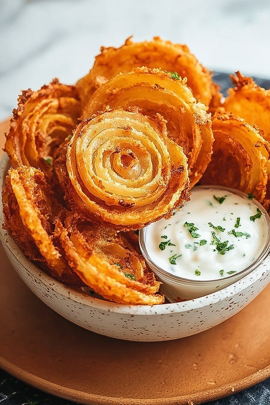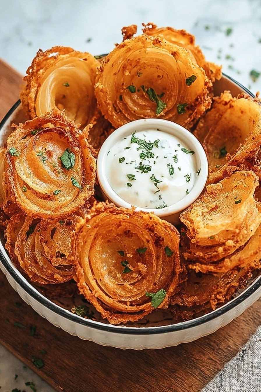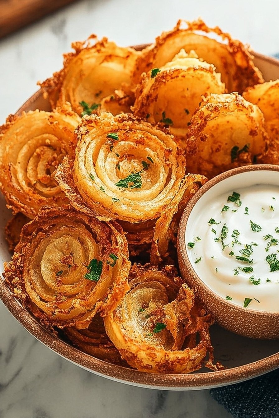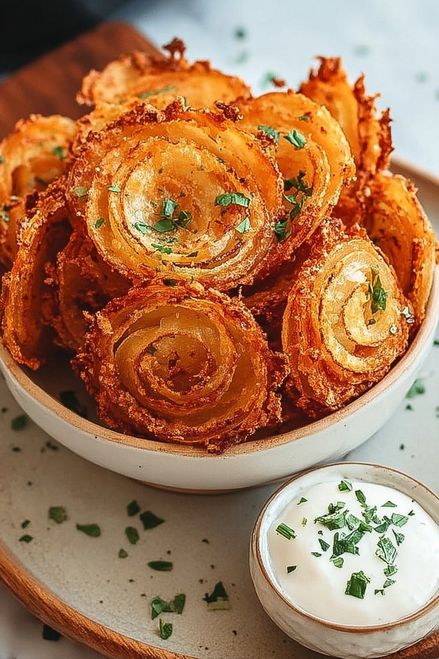 Taste then season. Salt can jump once the chips cool. Try a small piece and adjust. A pinch of paprika at the table adds color and warmth. Pair with a bright dip so the onion stays the star. Party appetizers love contrast. Keep the flavors clean and the crunch strong.