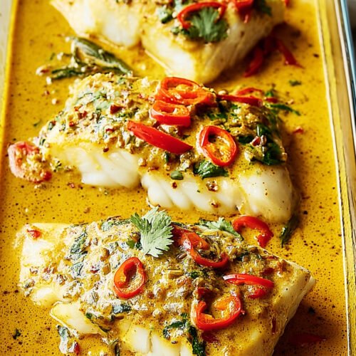 Sometimes dinner feels like a gamble, doesn’t it? You’re staring into the fridge, wondering how on earth to turn a couple of fillets and a jar of curry paste into something people will actually want to eat. That’s where this Coconut Curry Baked Cod saves the day. It’s simple, hearty, and carries a warm, spiced aroma that sneaks out of the oven and fills the whole house. And yes, while we’re calling it baked cod, it plays well with baked salmon recipes too, so you’re free to switch it up if that’s what’s sitting in your freezer. When I first made this dish, I was skeptical. Cod isn’t the flashiest fish on the block—it’s more like the quiet neighbor who suddenly throws an amazing backyard barbecue. With the right coconut curry sauce, though, it transforms into something bright and rich. It’s one of those cod recipes baked with just the right balance: tender fish tucked under a creamy, fragrant blanket that makes you wonder why you haven’t been making baked cod recipes all along. What I love most is how forgiving it is. You don’t need to fuss with complicated steps or dozens of spices. A handful of pantry staples do the trick, and before you know it, you’ve got one of those recipes baked to comfort-food perfection. Whether you’re trying cod fish recipes baked for the first time or revisiting an old favorite, this one earns its spot on repeat.