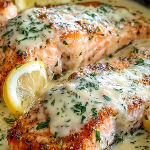 When I think of a dinner that feels fancy but doesn’t leave me exhausted in the kitchen, this baked salmon recipe always comes to mind. I mean, come on, a golden piece of salmon resting in a lemon butter cream sauce—does it get any better? If you’ve ever stared at a fillet of salmon and wondered what to do, let me tell you, this recipe is the one to keep close. It’s simple, it’s comforting, and it’s one of those recipes with salmon that makes you feel like you’ve mastered seafood without even breaking a sweat. I’ve made this dish on busy weeknights when the fridge is practically empty, and even used frozen salmon for a baked shortcut—it still comes out tender and delicious. That’s the beauty of it. You don’t need a long list of ingredients to create something special. With a good squeeze of lemon and a bit of cream, you’ve got yourself a salmon recipe that tastes restaurant-worthy. I’ve tried other recipes salmon fans swear by, but this one has a way of becoming a favorite because it feels both homely and impressive. So, if you’ve been searching for that one recipe for baked salmon that always delivers, look no further. Whether you’re using fresh or frozen salmon, baked slowly in the oven, this dish will bring big smiles to the table. Honestly, every bite tastes like a little celebration—and that’s what I think good food should be about.