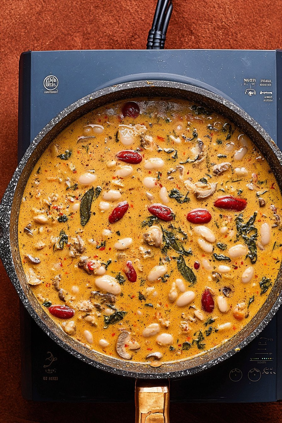 This pan gives comfort fast. Creamy sauce hugs tender beans. Bread makes the last bit vanish.