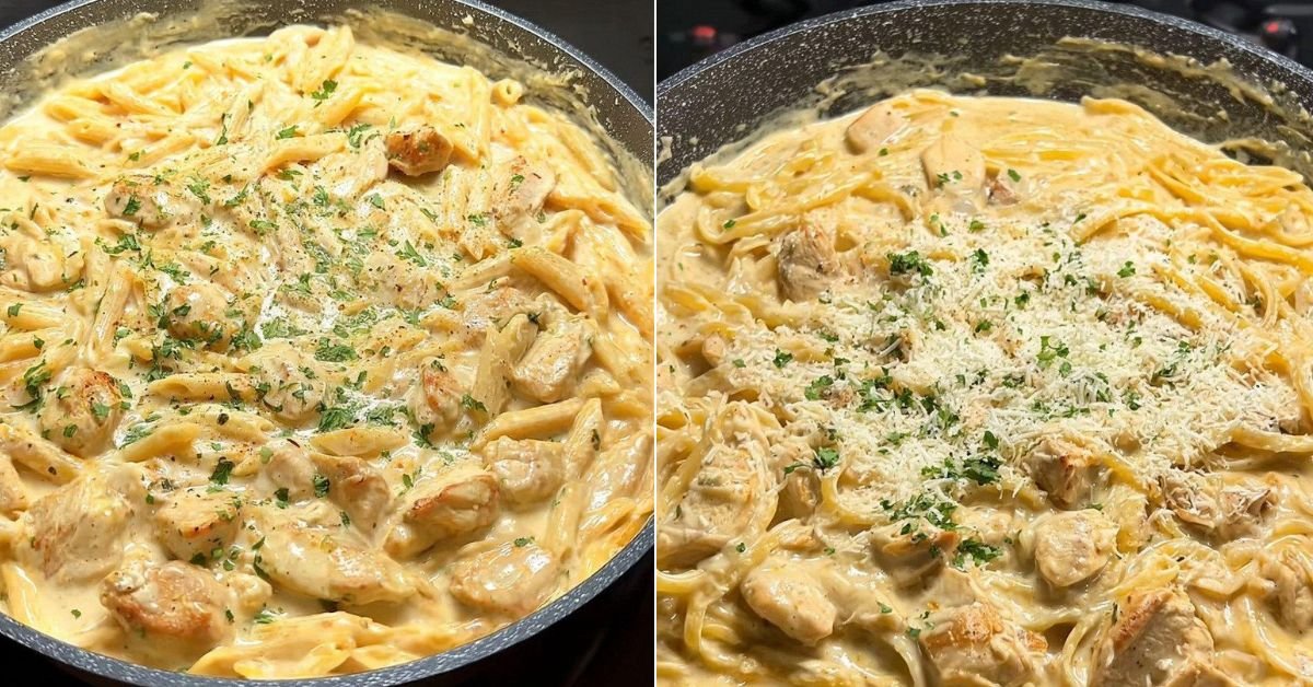 • This chicken alfredo recipe delivers a perfect balance of crispy chicken and creamy pasta.