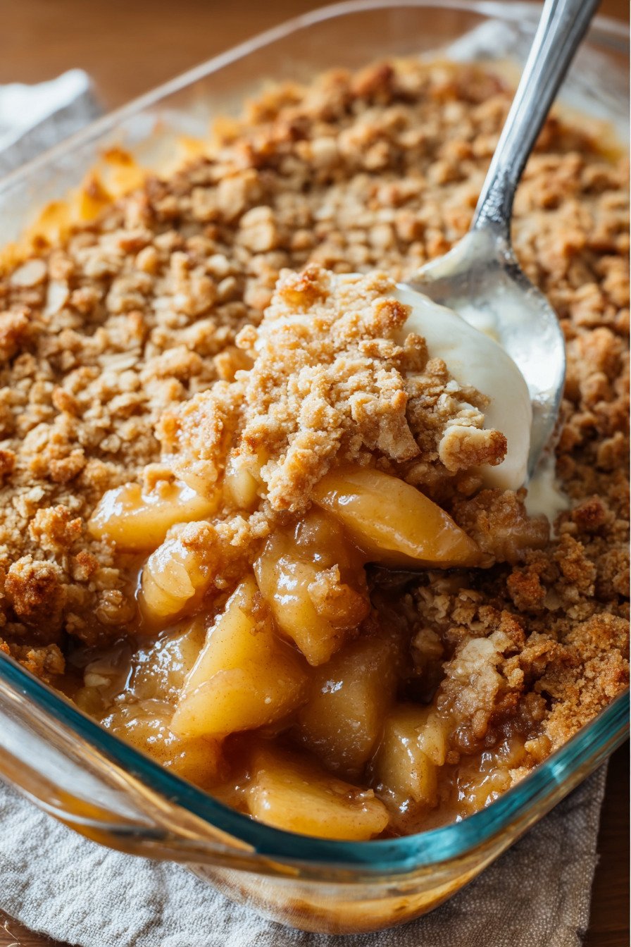 If you are trying to make a healthy apple crisp recipe, you can reduce the sugar slightly and let the fruit shine more naturally. You can also serve it with plain yogurt instead of ice cream for a lighter finish. For anyone who prefers a more traditional crumb topping, this version also works beautifully as an apple crisp recipe without oats.