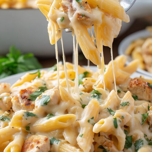 When I first made this cheesy chicken pasta, I wasn’t trying to impress anyone. I was just hungry, and my fridge looked like a sad bachelor pad—half a block of cheese, leftover chicken, and some pasta. Turns out, that random combination became one of my all-time favorite chicken recipes. There’s something deeply comforting about tender pasta wrapped in a creamy, cheesy sauce with juicy chicken. It reminds me of cozy weeknights when you just want a big bowl of something that makes the day feel better. And let’s be honest, we’ve all had those days where a plate of pasta can fix at least 85% of our problems. The best part is, this dish doesn’t take much effort. A little chopping, a little stirring, and before you know it, you’ve got dinner ready. Whether you love Chicken Pasta Recipes, need ideas for recipes chicken or recipe chicken, or even if you’ve secretly Googled k f c chicken recipe for inspiration, this cheesy baked chicken pasta is a win. It’s rich, it’s creamy, and it’s surprisingly easy to adapt into healthy chicken pasta recipes if you like to keep things lighter.