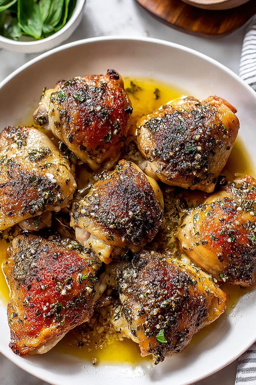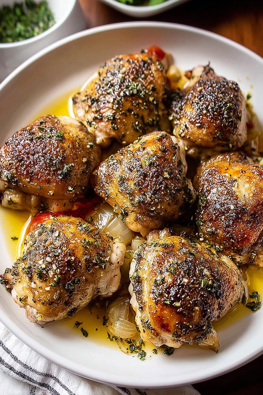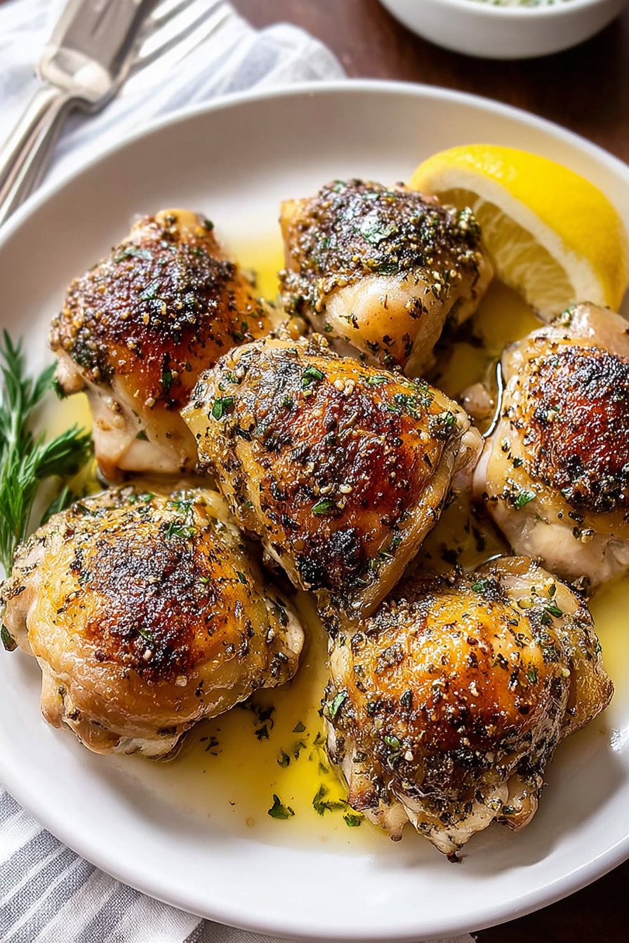 You know what I love about chicken thighs? They’re basically impossible to mess up. Unlike their boring cousin (chicken breast, I’m looking at you), thighs stay juicy and tender no matter what. I stumbled onto this recipe on one of those crazy weeknights when everyone was hungry and I had about zero motivation to cook. Tossed some Italian herbs on these bad boys, threw them in the oven, and boom! Dinner was served. Now it’s become my go-to recipe for chicken thighs whenever I need something that tastes like I spent hours in the kitchen but really only took about 10 minutes of actual work. What makes this one of my favorite recipes with chicken thighs is how the lemon juice and herbs create this amazing flavor that reminds me of Sunday dinners at my nonna’s house. The skin gets all crispy and golden while the meat stays fork-tender. Pair it with some roasted veggies or a simple salad and you’ve got yourself a meal that’ll make everyone think you’re some kind of kitchen wizard. Trust me on this one!