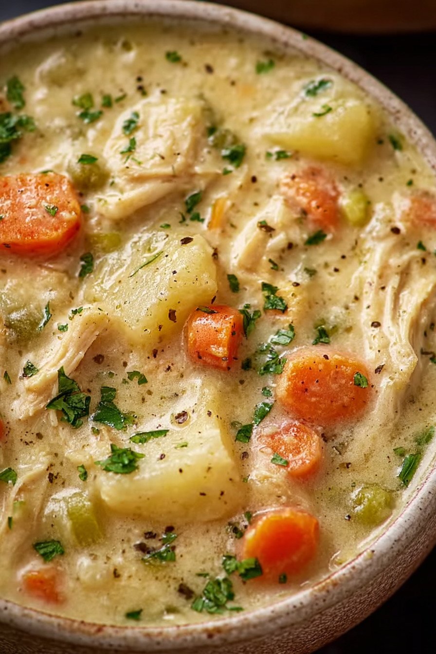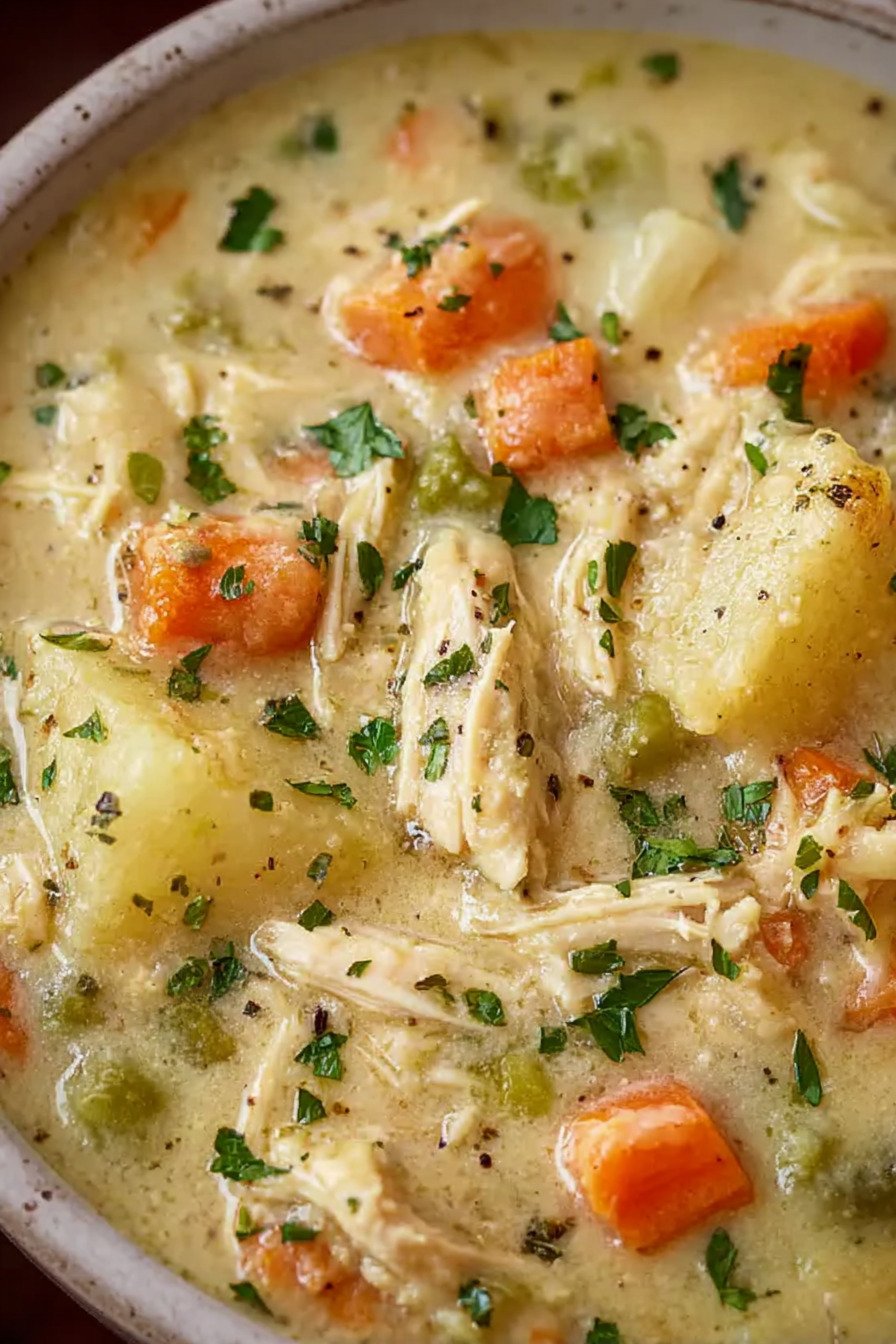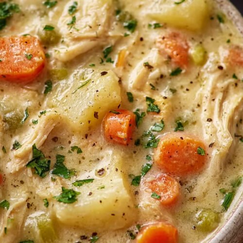Soup Recipes sit close to my heart, and this bowl proves why. I cook this chicken pot pie soup on quiet evenings when the kitchen smells warm and the spoon never rests. The pot fills with tender chicken, carrots, peas, and broth that tastes rich yet light. I keep thinking of other bowls I grew up with such as 13 bean soup recipe nights or the quick 7 can taco soup recipe easy dinners that saved busy weekdays. The idea came one cold afternoon. I wanted the comfort of Cast Iron Chicken Pot Pie with the ease of soup. A slow simmer did the trick. The broth thickens a bit, chicken turns soft, and the spoon lifts a hearty bite every time. A friend once said the bowl reminded her of Broccoli Soup Crockpot meals from long winter Sundays and even a creamy BrĂ³coli Cheddar Soup she loved as a kid. A small handful of herbs brings the whole pot together. Steam rises, the smell drifts across the room, and dinner feels calm again. I ladle it into deep bowls and pass bread around the table. Some nights it even reminds me of Baked French Onion Soup comfort, just lighter and packed with protein.