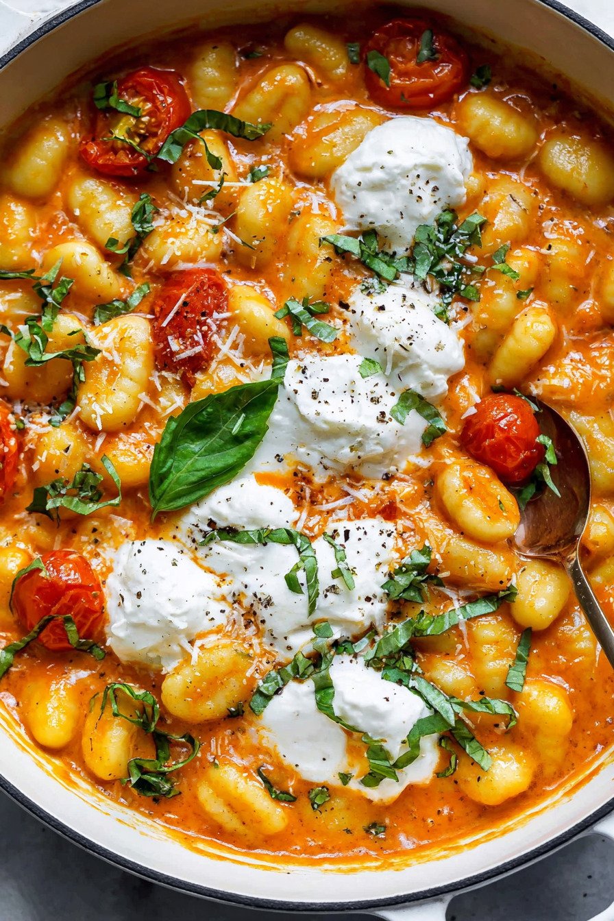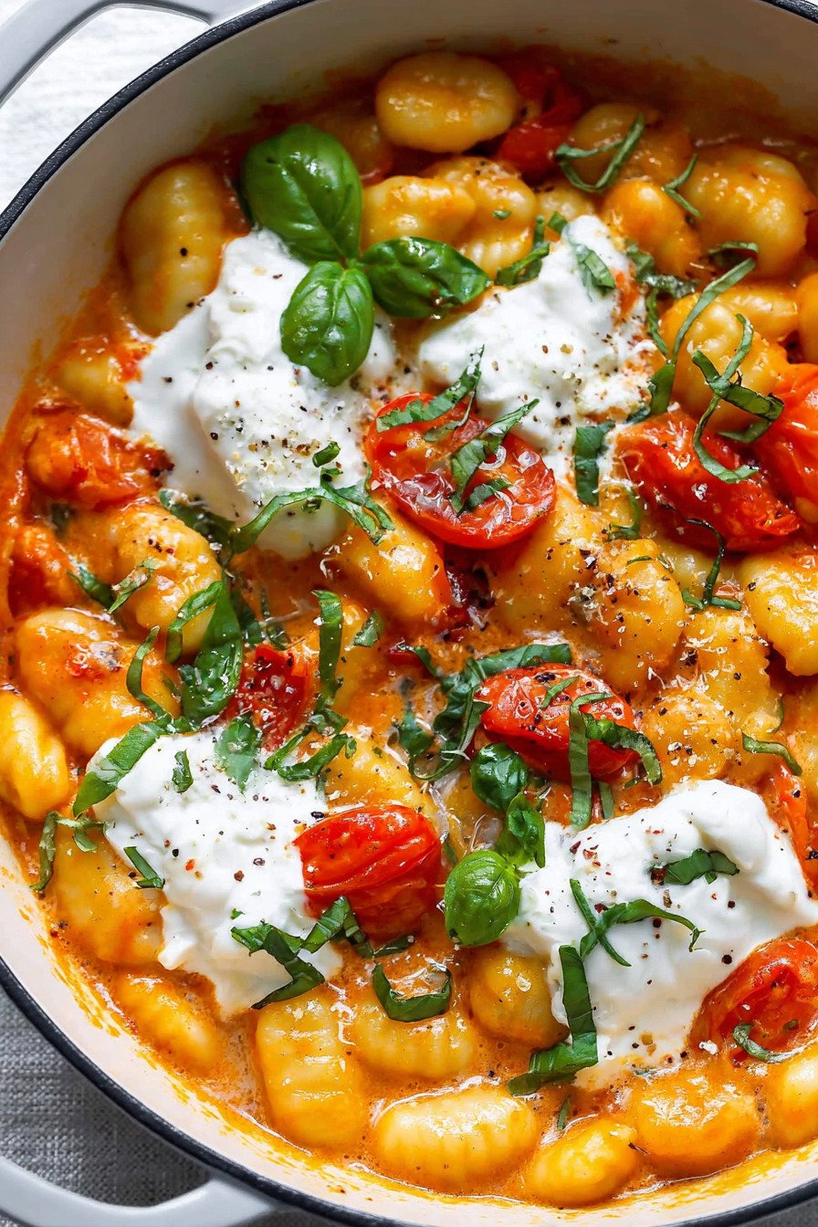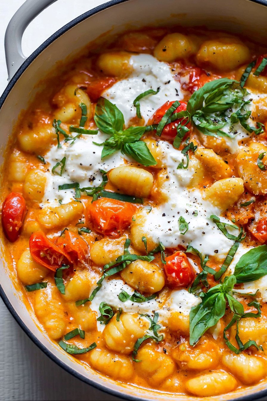 The burrata melts into the hot pan and turns into silk. You tear it open and watch the center spill over the creamy tomato pasta. It looks dramatic, yet the process feels simple. That contrast makes this one of my favorite Italian gnocchi recipes to share with friends.