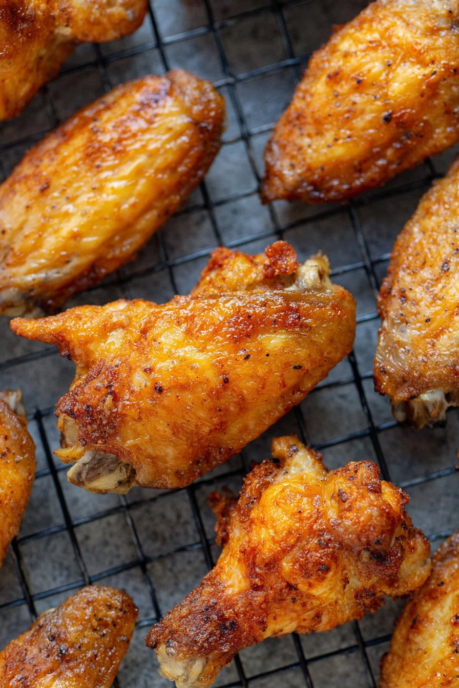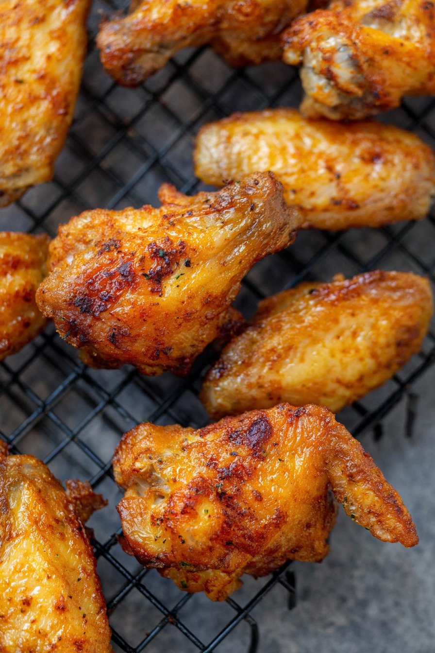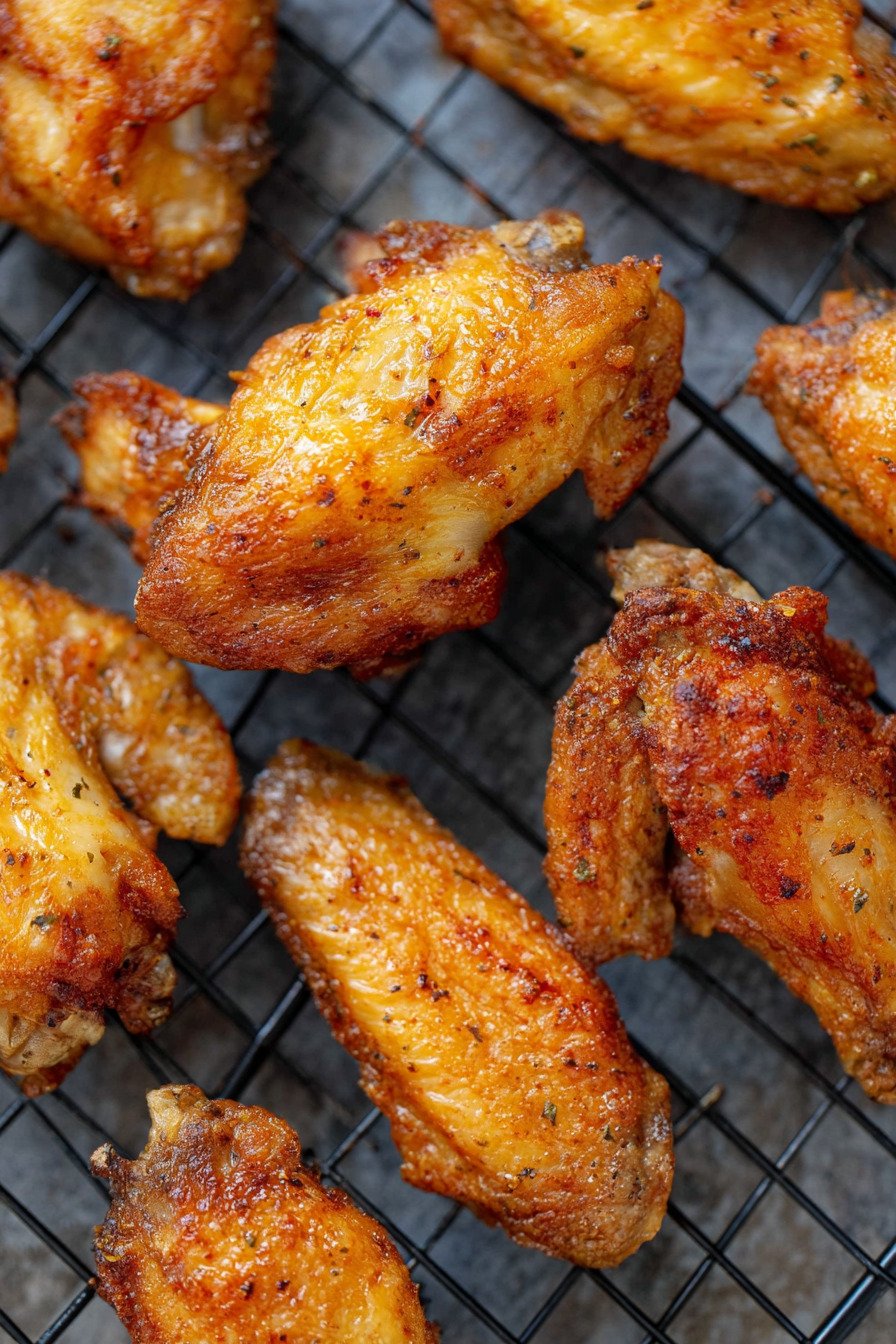 Chicken Wings The star of this dish, chicken wings provide the perfect balance of crispy skin and tender meat when cooked in the air fryer.