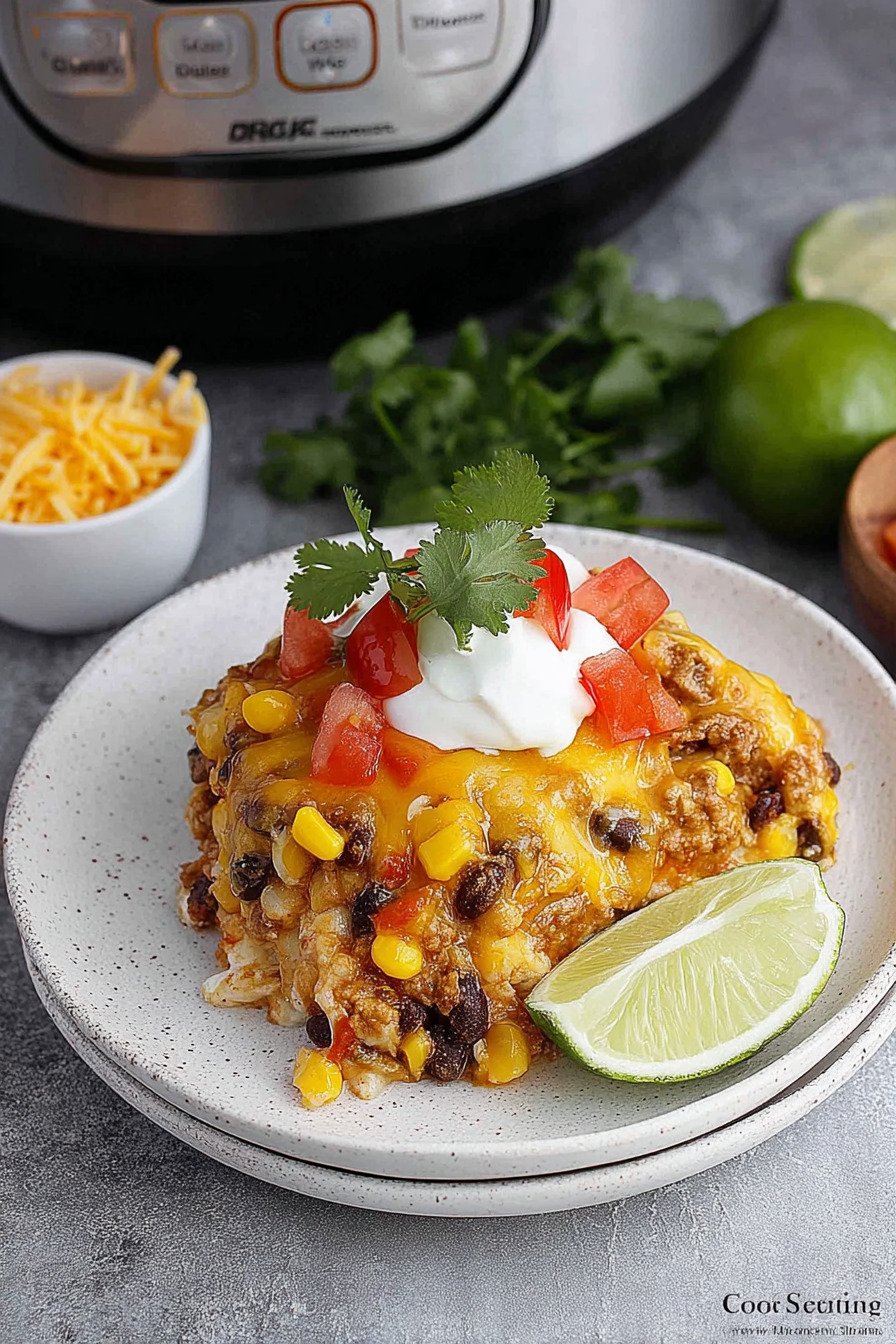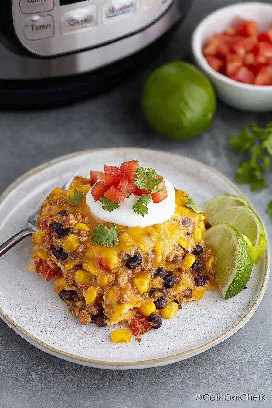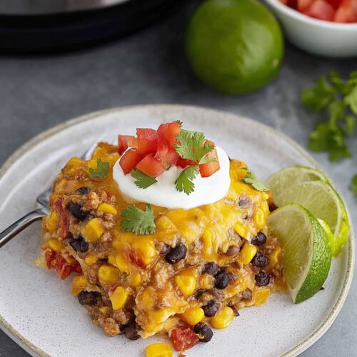 I am Linda from Cook Daily Recipe at https://www.cookdailyrecipes.com and I like dinners that help out. This one stacks tortillas with seasoned beef, beans, corn, and cheese. The cooker hums and the house smells cozy. We dig in and the edges give a light crisp that meets the creamy center. I say it with calm pride, this pan feeds people well.