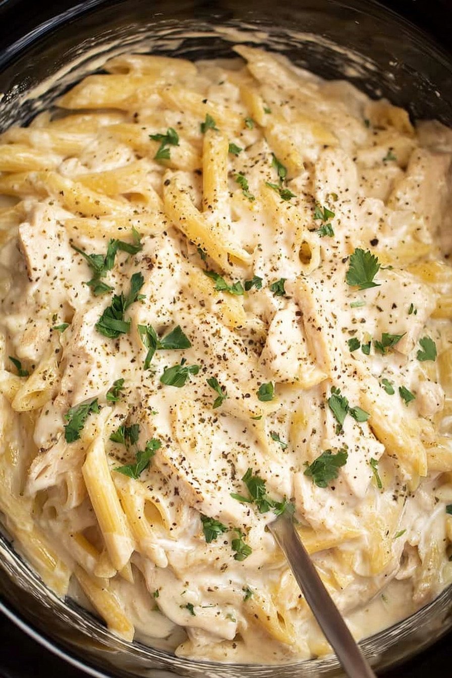 Think slow cooker ease with alfredo joy. Think best bites with real parmesan and a hint of garlic. This works for easy weeknight crockpot dinners and also for a family friendly pasta dinner that brings the room together.