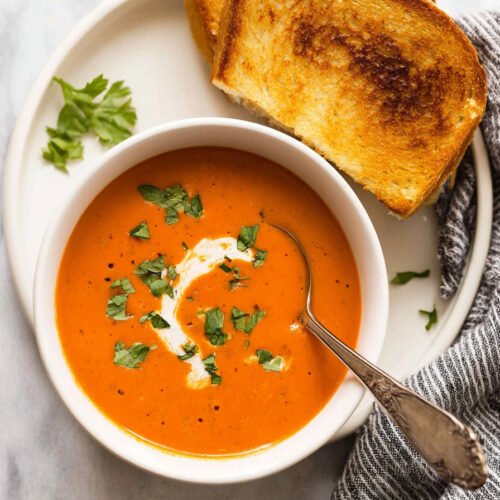 Adjust the thickness to your preference. Some people like their tomato soup super thick and hearty, almost like a bisque. Others prefer it a bit thinner and more broth like. If your soup is too thick, just thin it out with a little extra milk or even some vegetable broth. If it’s too thin, let it simmer uncovered for a few extra minutes to reduce and thicken. You can also add a tablespoon of tomato paste to thicken it up and boost the tomato flavor at the same time.