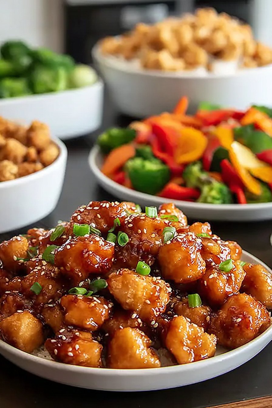 Cornstarch Cornstarch is essential for both coating the chicken and thickening the sauce, creating the crisp exterior and silky glaze that make this recipe so satisfying.