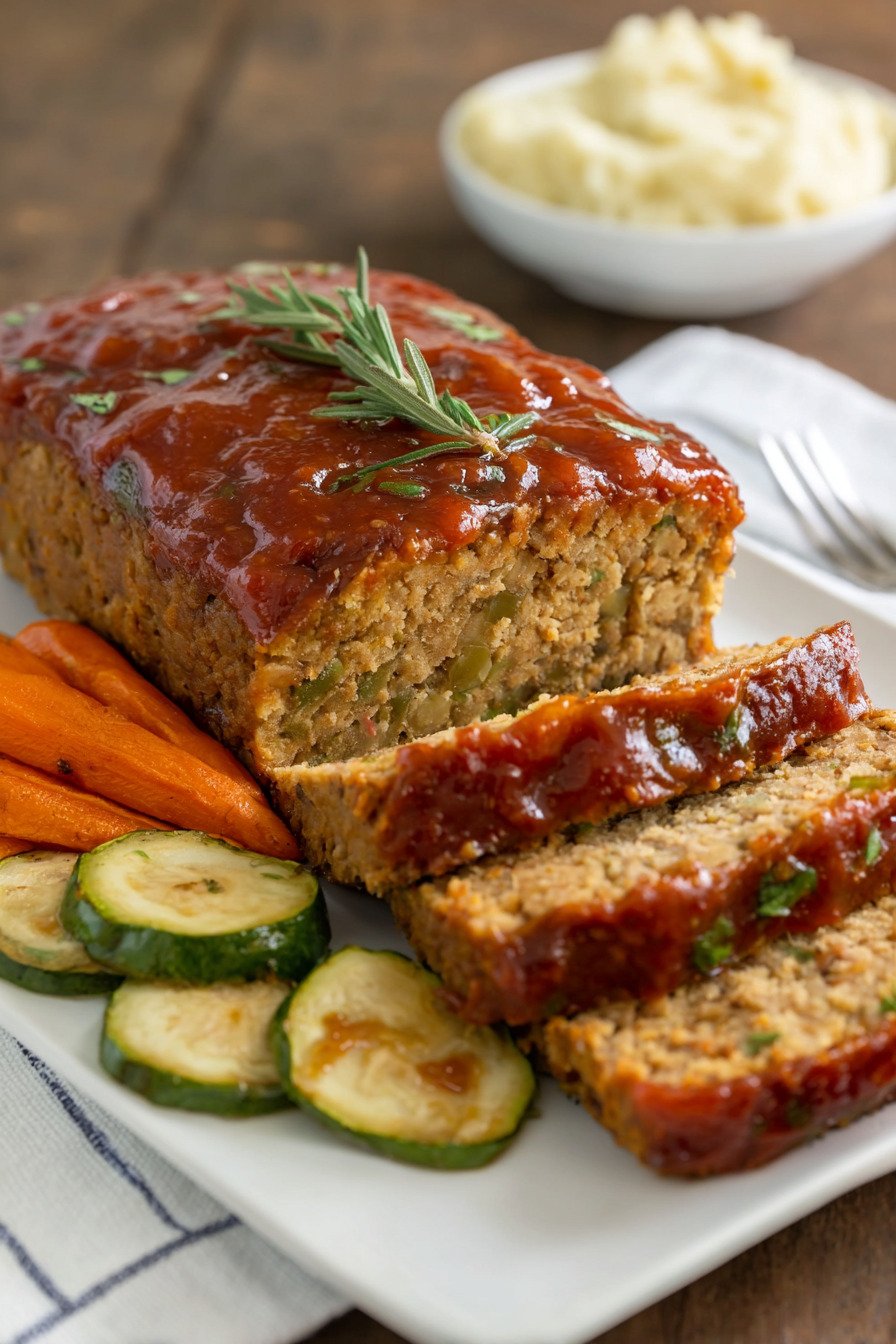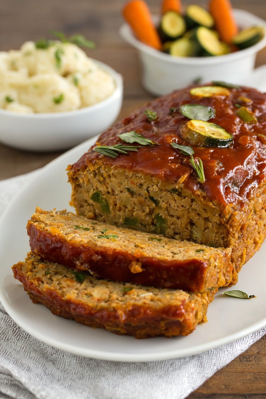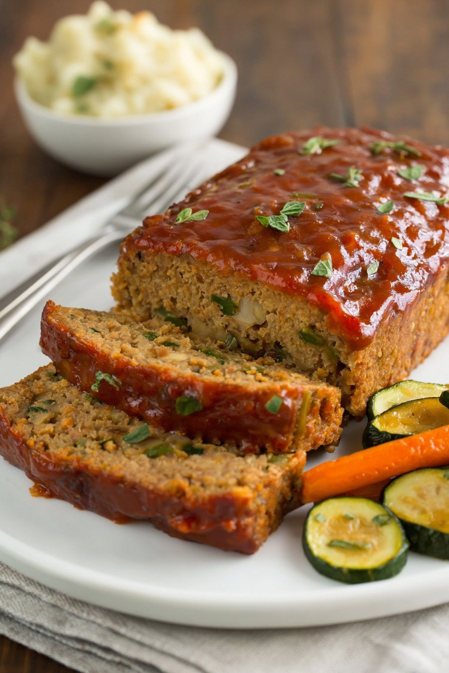 I grew up on a classic 2 pound meatloaf recipe, the kind that filled the house with a rich smell and brought everyone to the table fast. When I started cooking more plant based meals, I missed that comfort. So I played around with chickpeas and pantry staples until I landed on this vegan meatloaf recipe that feels just right. It fits right in with easy vegetarian dinner recipes and even works for fans of simple 3 ingredient recipes or 4 ingredient recipes dinner ideas. We mash tender chickpeas, stir in oats, sautéed onion, and a bold glaze, then press it all into a loaf pan. The texture holds firm yet slices clean. It is hearty like the meat version I knew as a kid, yet it leans into smart bean recipes dinner cooks love. I promise you will not miss the beef. I make this loaf on busy weeknights when I want comfort without fuss. It smells warm and savory as it bakes. The edges turn golden. The glaze turns sticky and sweet. We slice it thick, serve it with mashed potatoes, and call it dinner done right.