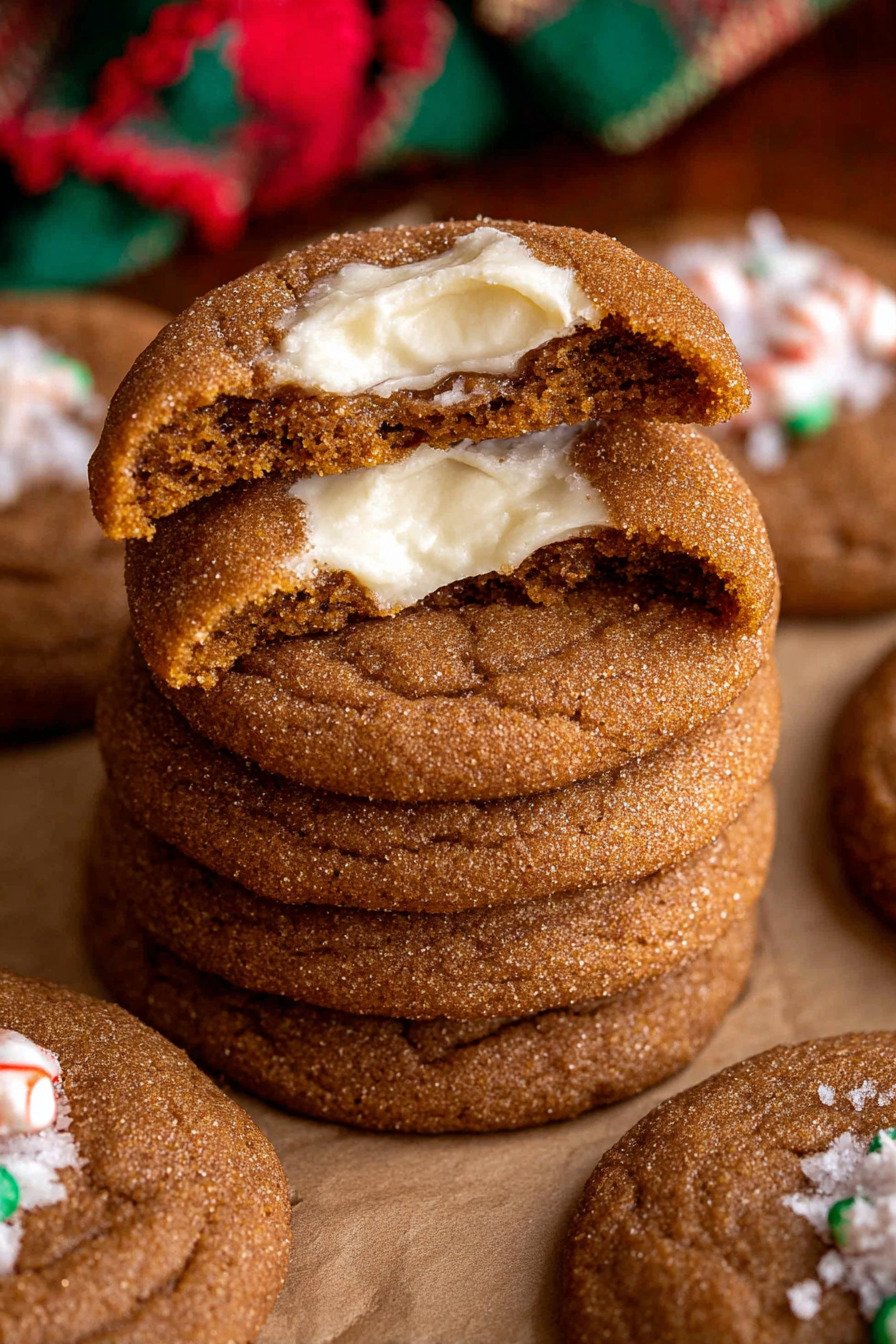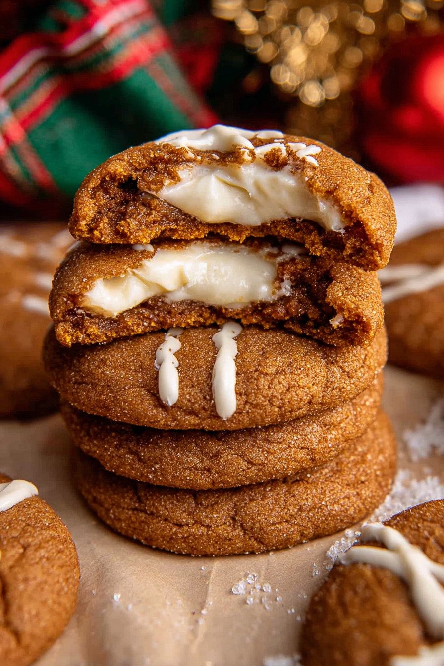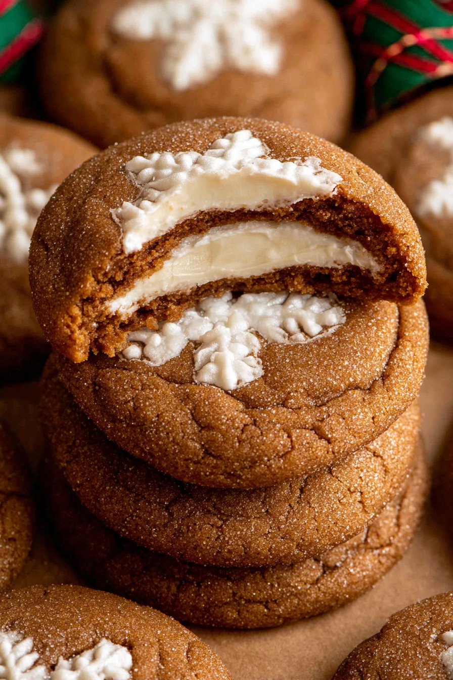 These gingerbread cookies carry spice and a little snap at the edge. The middle stays tender. The cheesecake core adds calm richness. Kids call them cookie pies. I call them a win.