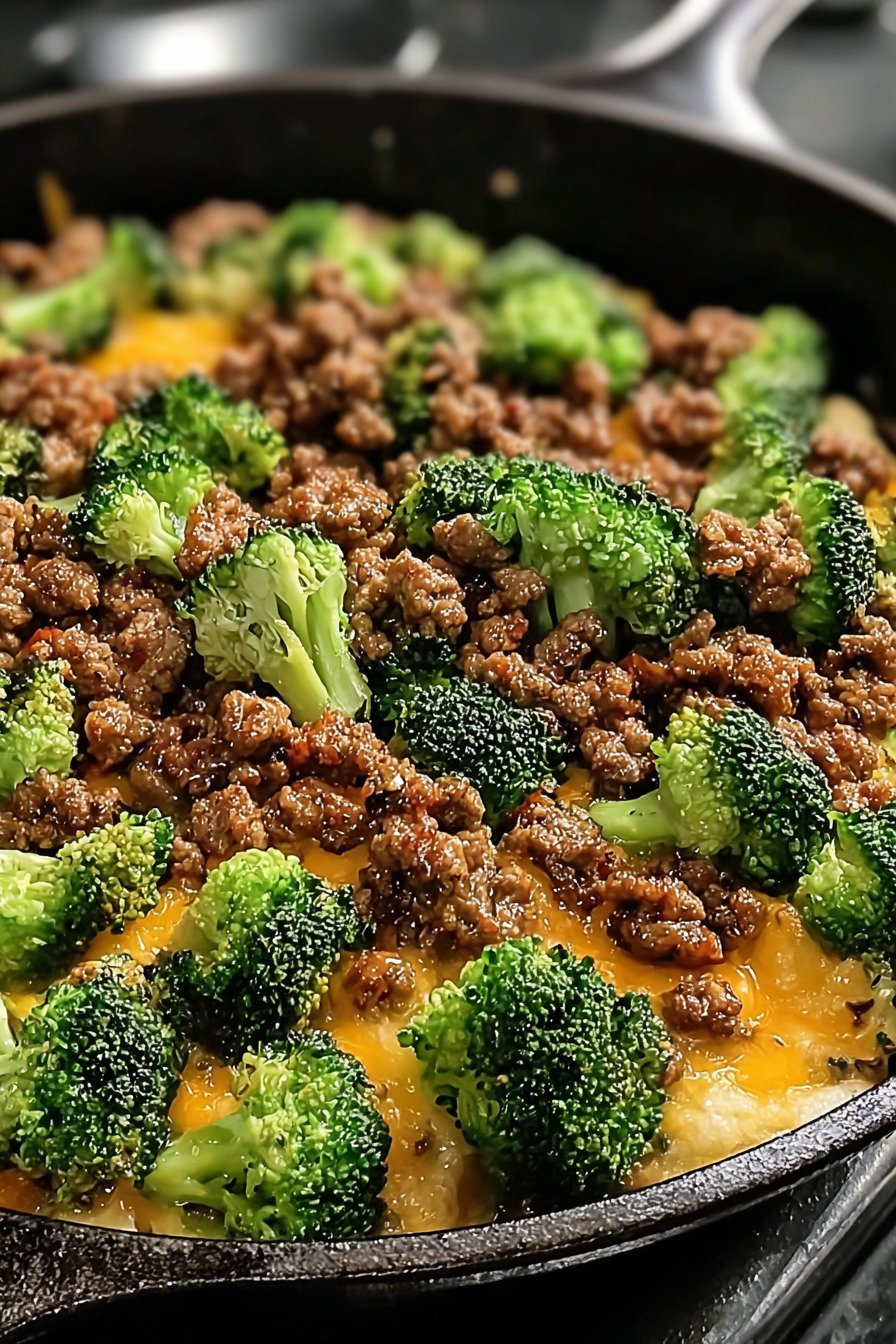 2) Easy Keto Hamburger Broccoli Skillet Recipe