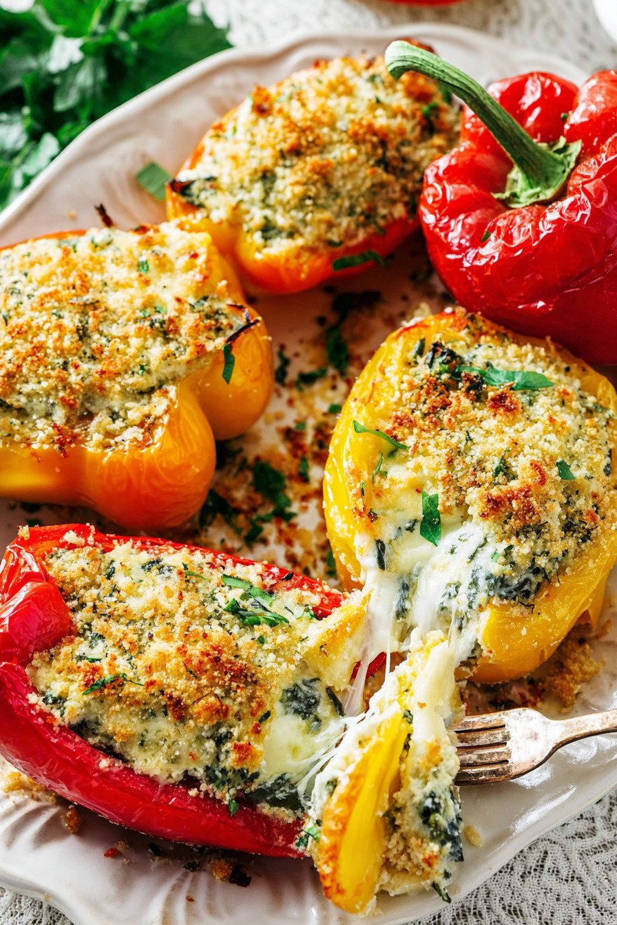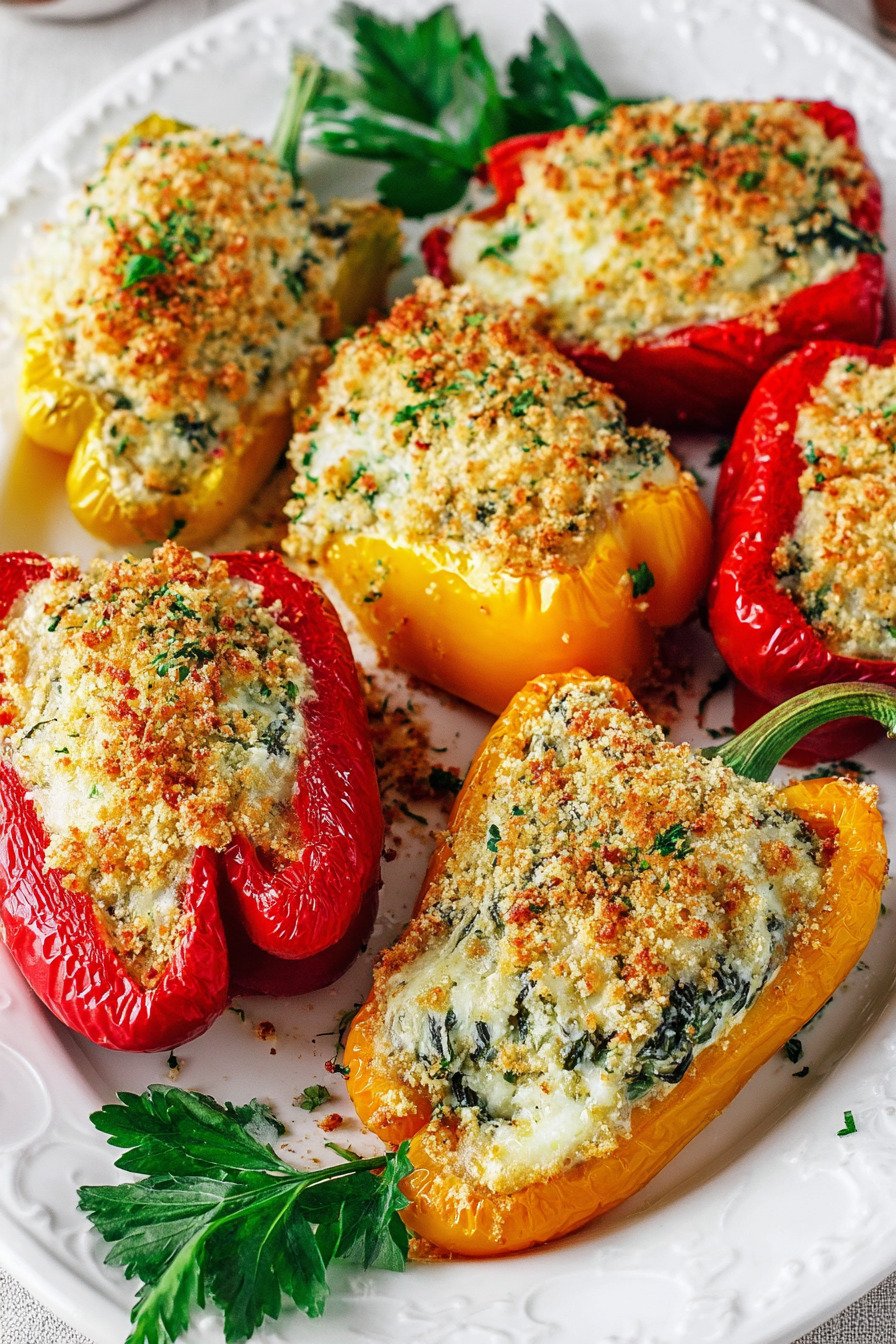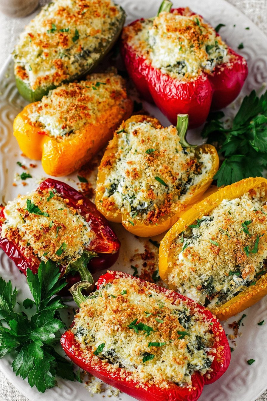 For the best results, choose firm, brightly colored peppers that can hold their shape during baking. Red, yellow, and orange peppers tend to be sweeter and work especially well in ricotta stuffed peppers, enhancing the overall flavor profile.