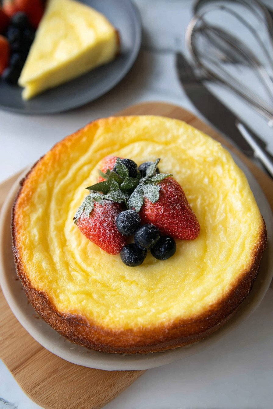 I bake this Greek yogurt cake when I want a light treat that still feels cozy. Low Carb Baking fits here in a sweet and calm way. The batter stays simple and clean. Four ingredients. One bowl. A gentle bake. The result lands soft and creamy with a tender set. I whisk and I hum. The yogurt brings tang and body. Eggs give lift. Sugar adds mellow sweetness. Cornstarch holds the custard like crumb. I love how the top takes on a pale gold color, and the kitchen smells warm and friendly. You can serve it plain or with berries. I like a small cloud of yogurt on the side. We slice and share, and the fork glides through like a soft cheesecake. It works for brunch or a relaxed night. It cools fast. It cuts neat. It makes sense for busy days.