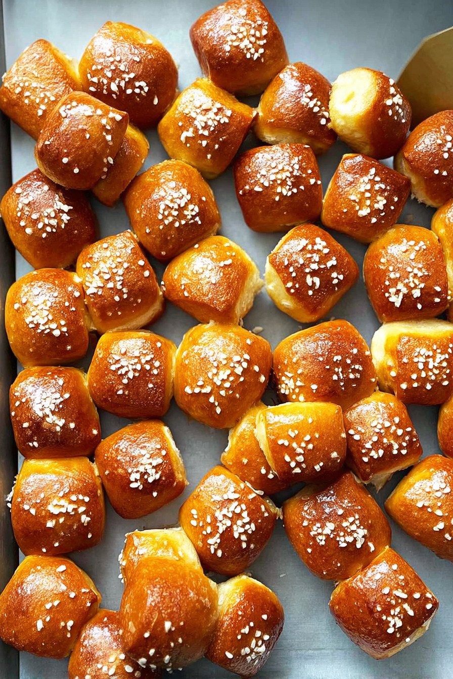 Do not skip the baking soda bath, because that step gives pretzel bites their signature crust and deep color. Keep the boil gentle and work in batches so the dough pieces do not overcrowd the pot. If you want a slightly richer finish, brush the baked pretzel bites with a little melted butter as soon as they come out of the oven.