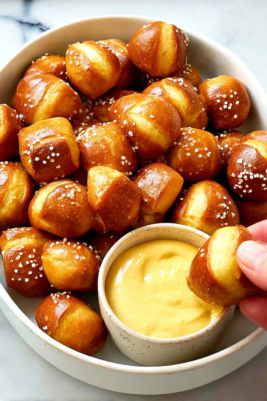 When you need crowd-pleasing Appetizer Recipes that feel homemade but still easy enough for a busy day, these Pretzel Bites are the kind of snack everyone reaches for first. They are soft, golden, chewy, and perfect for dipping, which makes them one of the Best Easy Appetizers to serve for game day, parties, or cozy weekends at home. Paired with a warm Beer Cheese Recipe, they deliver that classic pub-style flavor in a fun, bite-sized form. What makes this recipe especially useful is how well it fits into a variety of snack spreads. You can serve these Pretzel Bites alongside favorites like Bacon Wrapped Chicken Bites, Baked Mushrooms, or even Baked Chicken Tenderloins to build a full table of savory bites. They also work beautifully when you want something comforting and shareable that looks impressive without requiring complicated steps. If you love flexible snacks that can fit into modern cooking routines, this recipe is also a smart addition to your collection of Air Fryer Recipes Easy enough for everyday entertaining, even though this version is baked in the oven. The result is a warm, salty, fluffy appetizer with a creamy cheese dip that turns simple ingredients into one of those Appetizer Recipes you will want to make again and again.