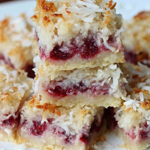 I bake these raspberry coconut squares when I want a sweet win that still fits our low carb groove. They taste like the bars my grandma loved, only lighter and friendlier for today. We get a tender almond flour crust, a bright raspberry layer, and a toasty coconut crown. They slice clean, they travel well, and they always vanish fast. Keto Recipes fans, you are in the right kitchen. We keep this dessert simple and calm. Sugar Free Desserts sit best with me, and this one brings joy without a crash. The crust uses almond flour plus a touch of coconut flour for a soft bite that still holds. The filling leans on sugar free raspberry preserves. The top bakes into a chewy blanket of coconut. Every square gives a little crunch then a little jam then a mellow, buttery finish. For days when you want quick comfort, these bars feel like a hug. I make a pan when friends swing by, or when I need small Keto Snacks for the week. Low Carb Recipes help us stay steady, and Almond Flour Desserts save the day when that late night craving starts to whisper. We even call them Berry Desserts at home, since the raspberry shines. If you cook with Coconut Flour Recipes often, you will love how well this batter sets and how neat each square cuts.