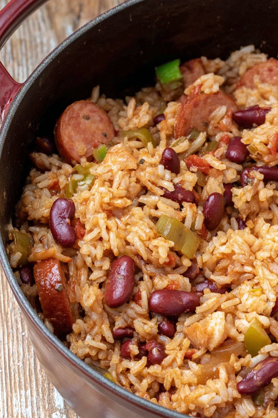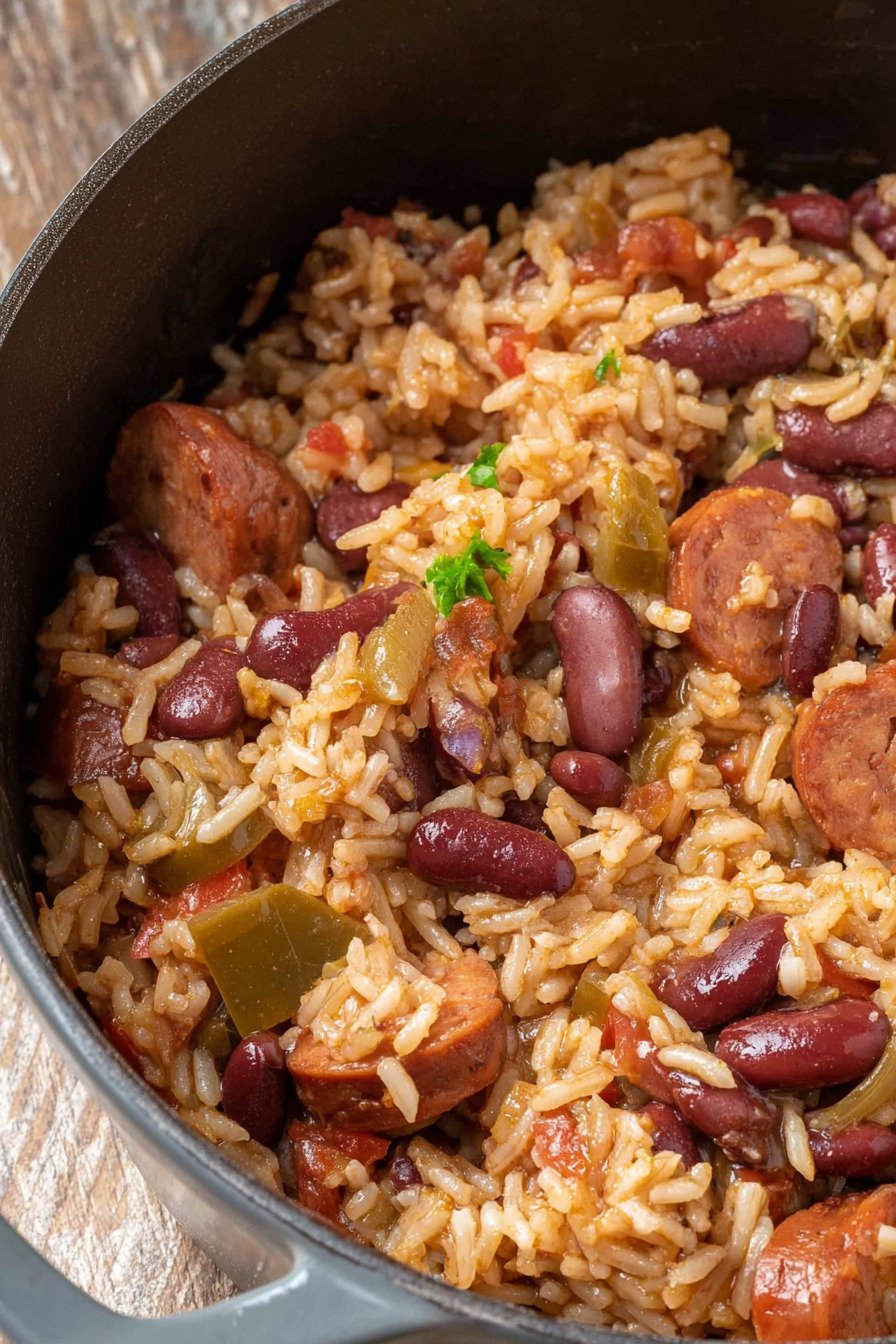 The goal stays clear. Warm supper. Clean method. Few dishes. The pot holds beans sausage peppers onion and celery. Spices lean savory not hot. Vinegar at the end snaps the flavor awake. The dish sits well for packed lunches. It makes a relaxed rice dinner and honest comfort food that people ask for again.