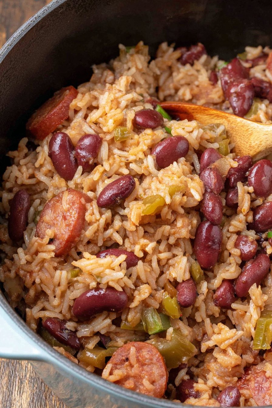 When I reheat I taste and tune. A drop of vinegar brightens. A pinch of salt rounds the edges. Fresh green onions add crunch. The bowl still reads like a classic red beans and rice meal which keeps everyone happy.