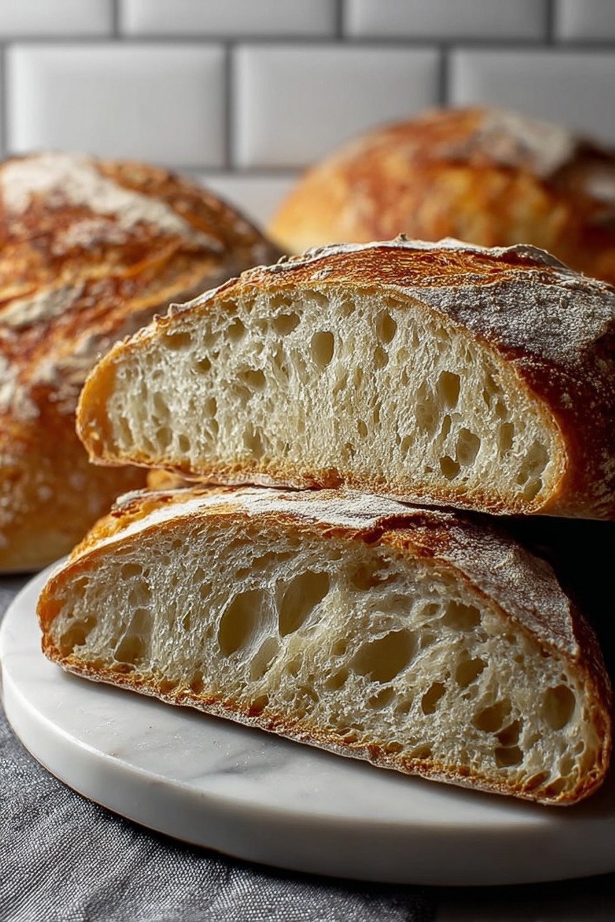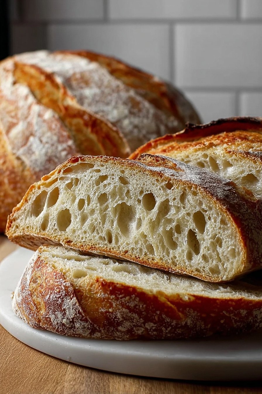 step 9. Cool on a rack until the song stops. Slice with a sharp bread knife. The crumb looks open and tender. The crust stays crisp.