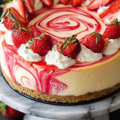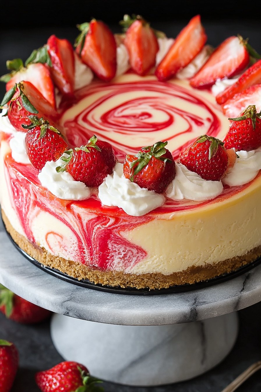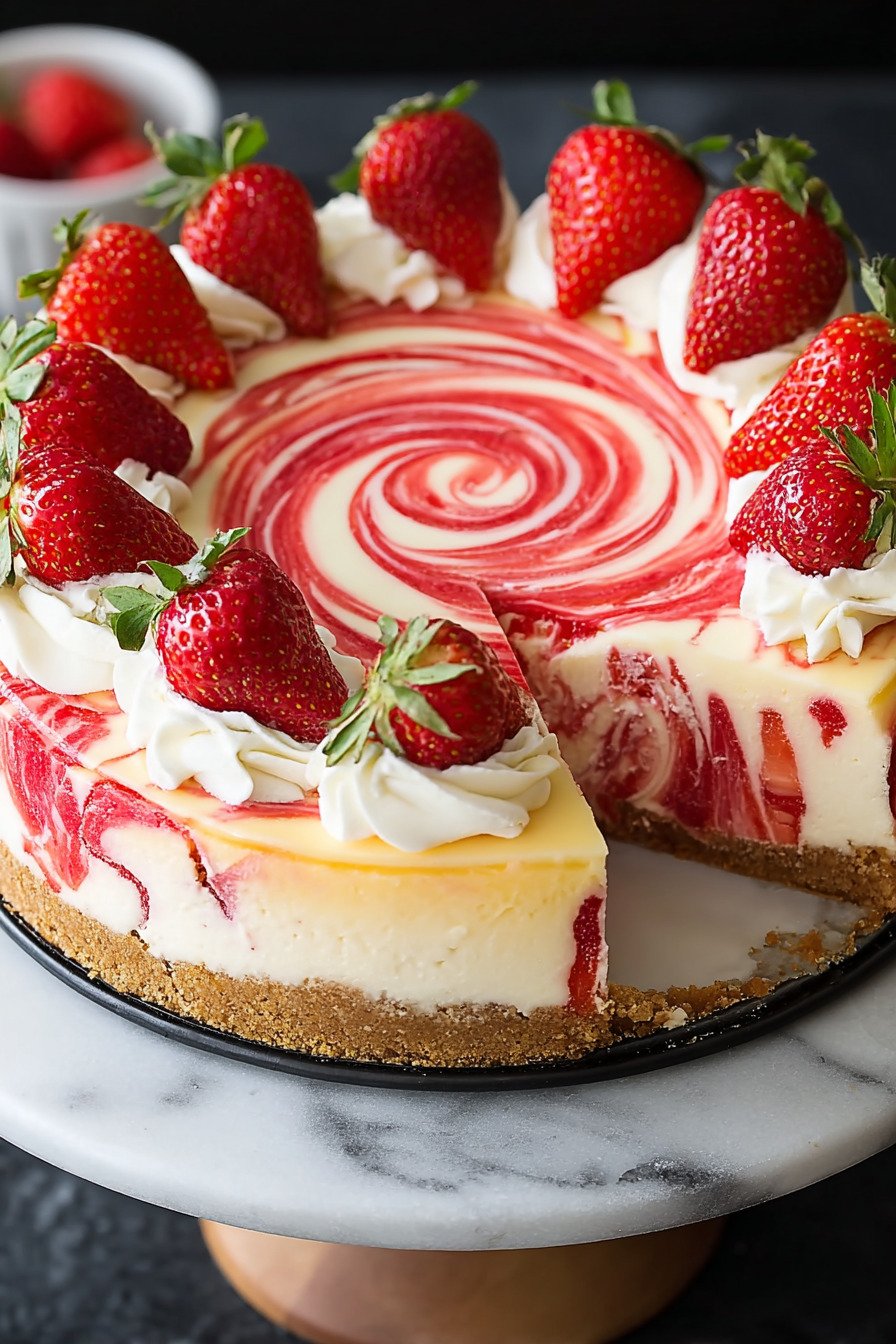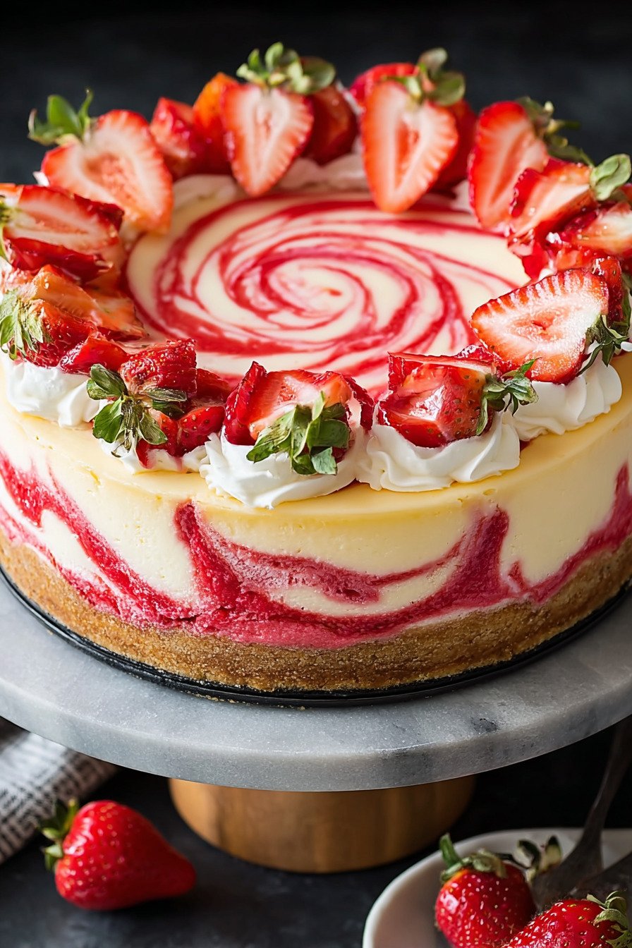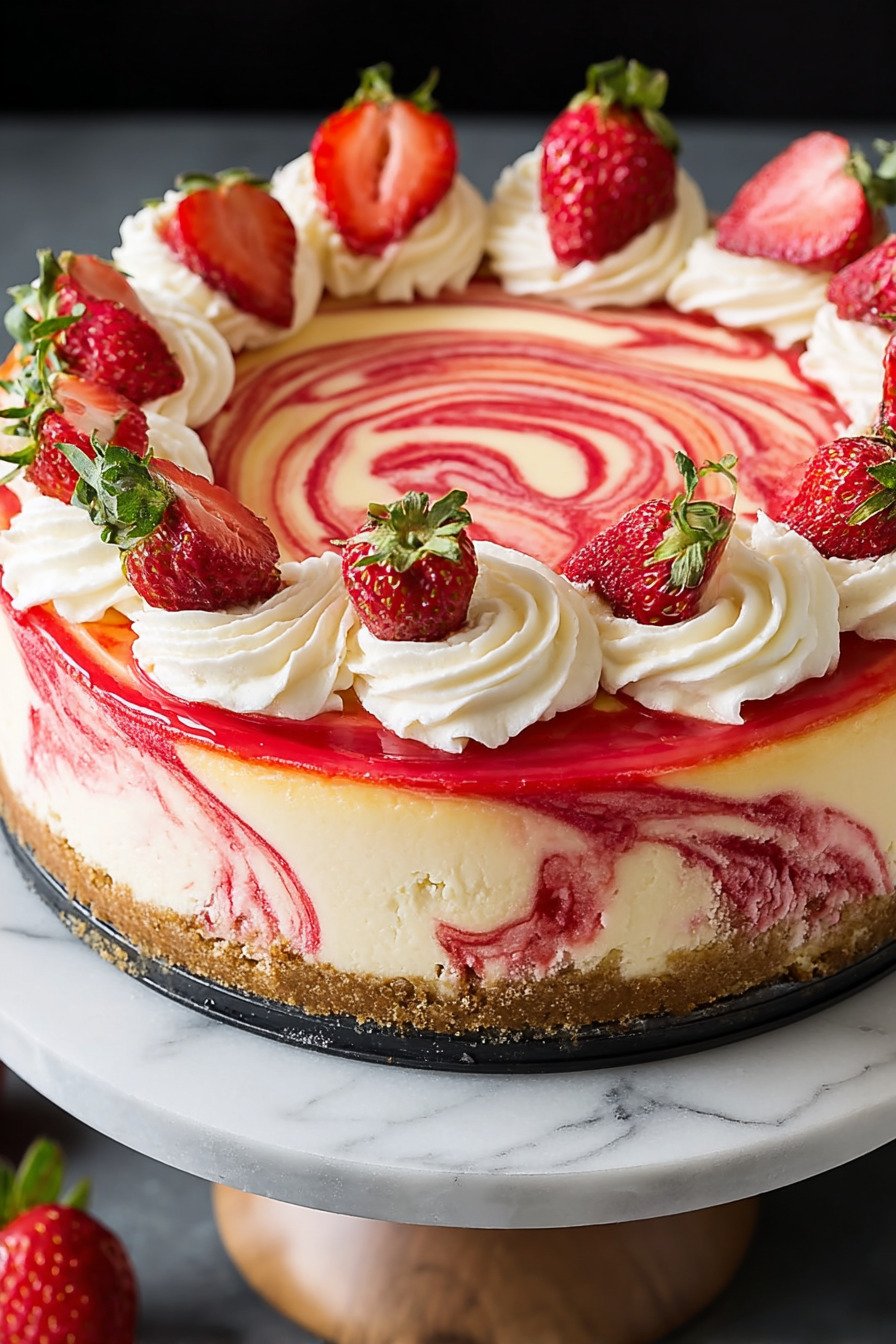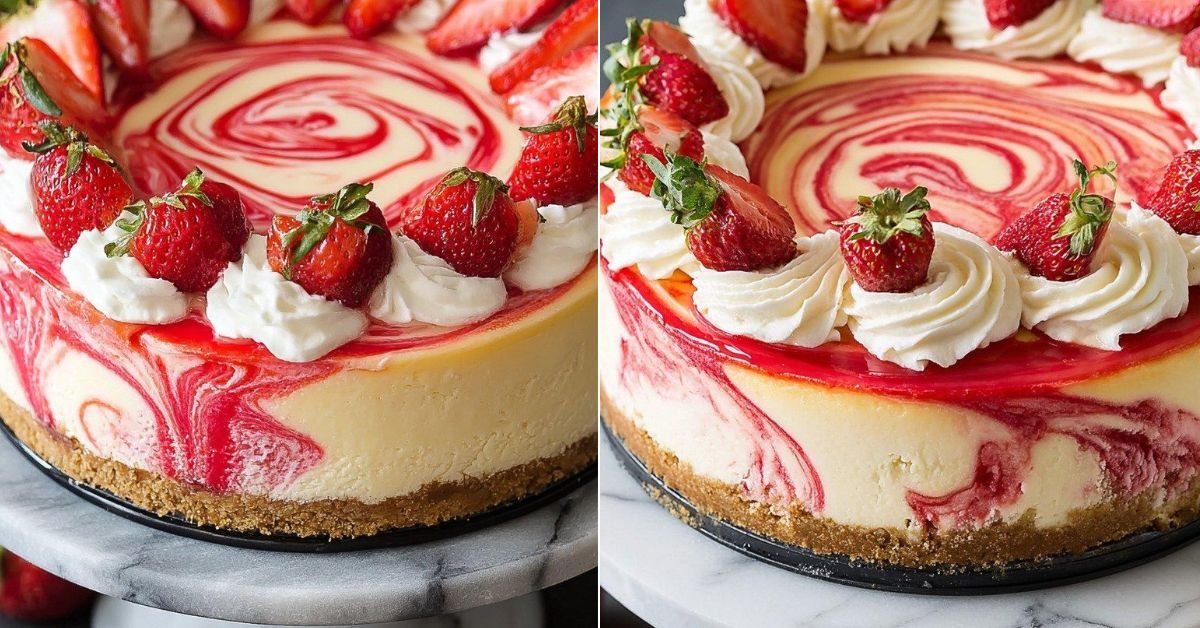 2) Easy Strawberry Swirl Cheesecake Recipe