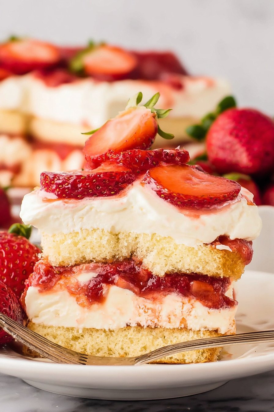 Keep the final layer of berries fresh by slicing near service. If you plan a long chill hold a small bowl of berries on the side and add them later.