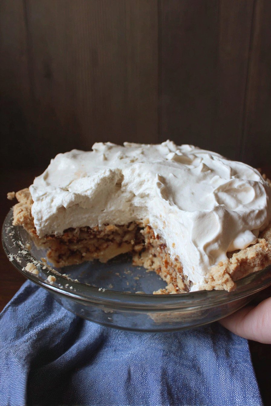 Cover the pie and chill for three days. The crust stays chewy. The top stays light.