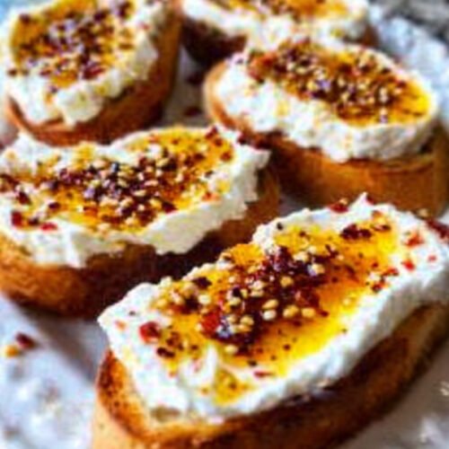 Sweet and Spicy Whipped Feta Crostini – Appetizer Recipes Made Easy