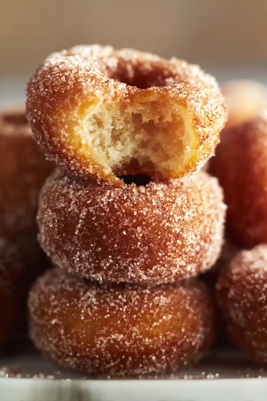 At room temperature in a sealed container, these last about two days. Maybe three if your house is cool and dry. The cinnamon sugar coating might lose some of its crunch, but the donuts themselves stay pretty soft. If the coating does get sad, you can always roll them in fresh cinnamon sugar after reheating.