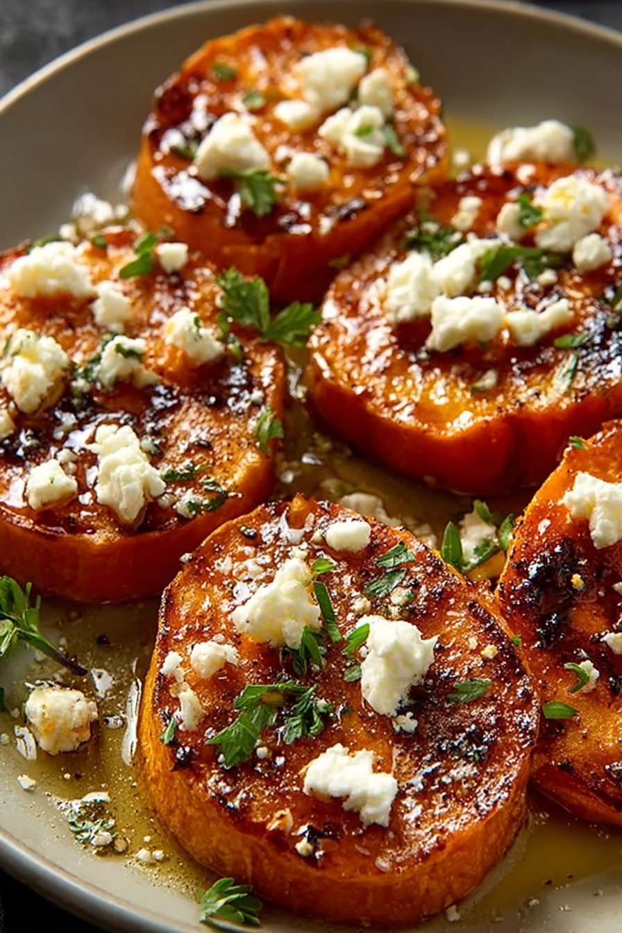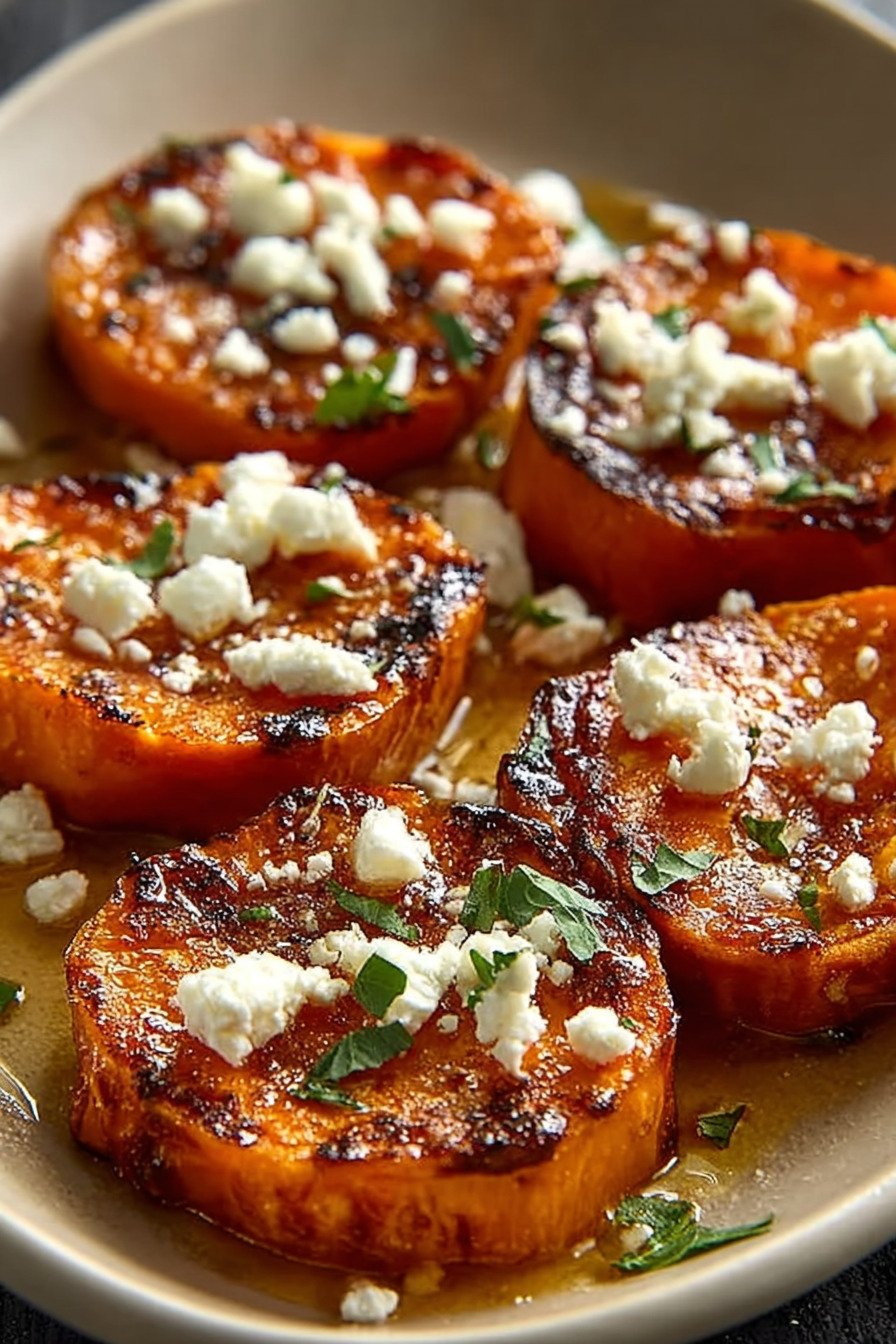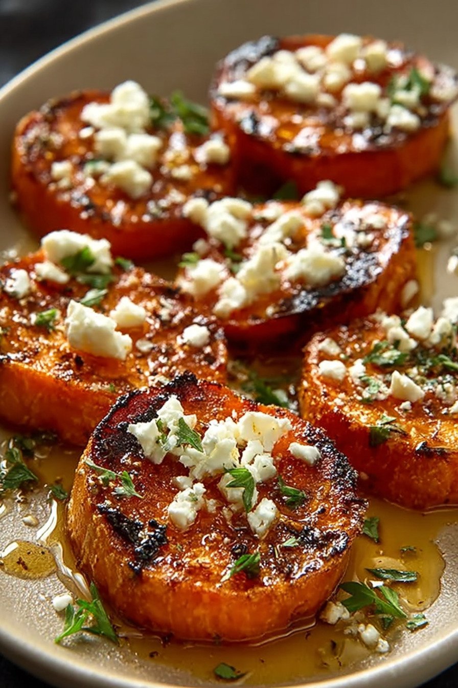 2) Easy Roasted Sweet Potato Rounds with Honey and Feta Recipe