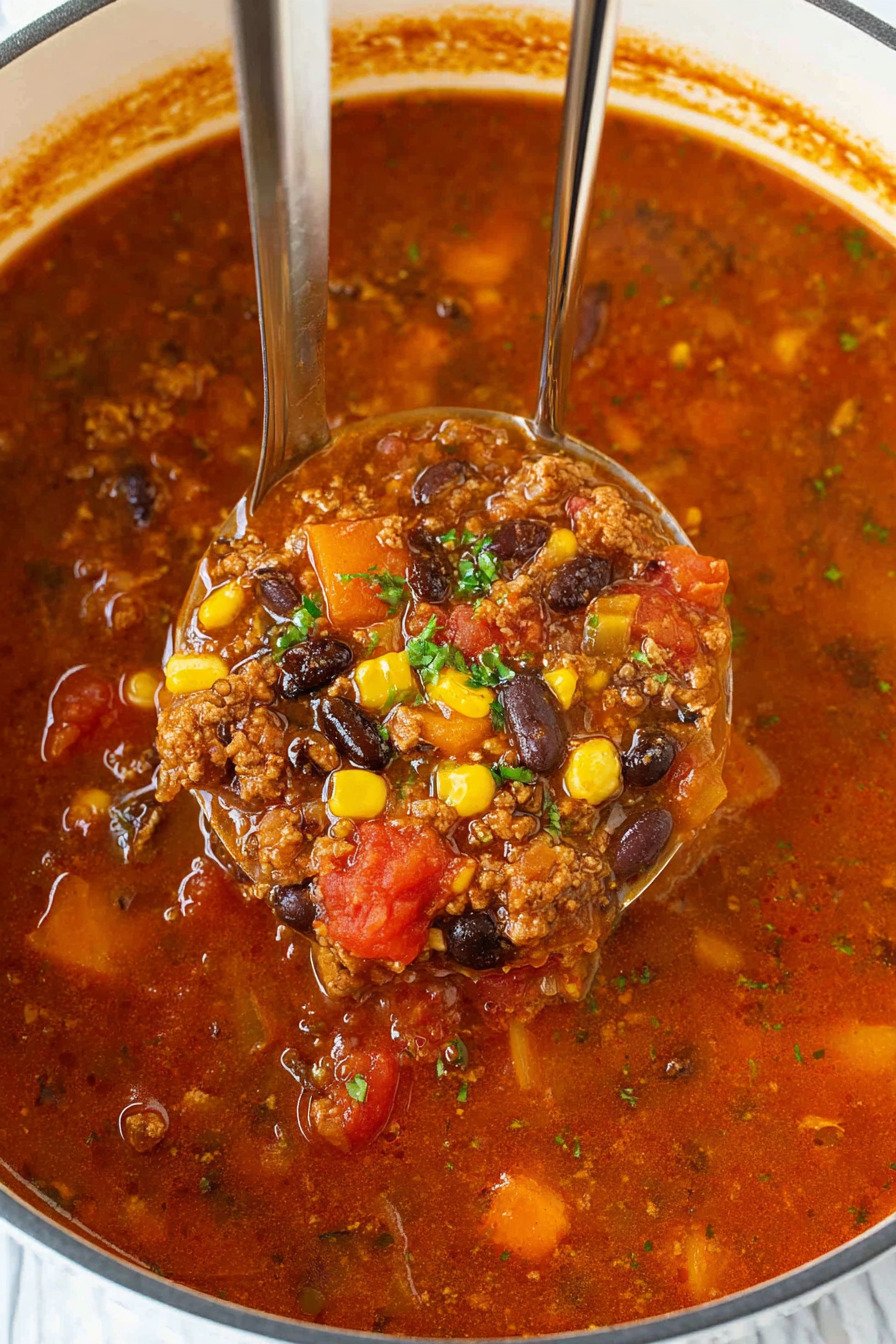I still remember the first time I made taco soup. I doubted it. Beans from cans, tomatoes from cans, seasoning from a packet. I thought it might taste flat. I was wrong. One spoonful changed my mind. The broth felt deep. The beef gave weight. The corn added soft sweetness.