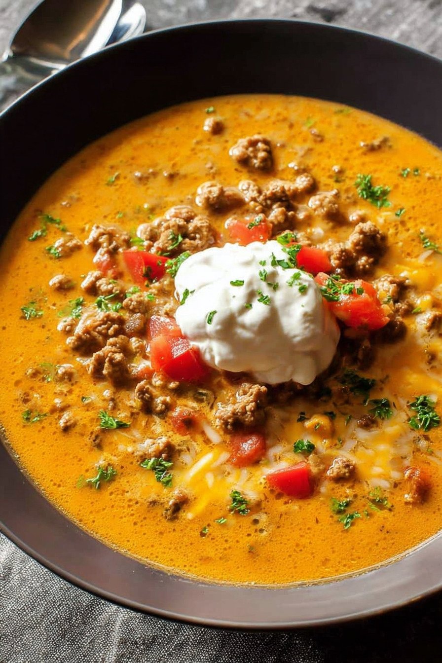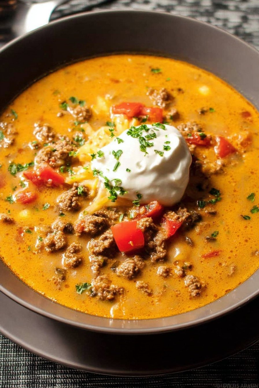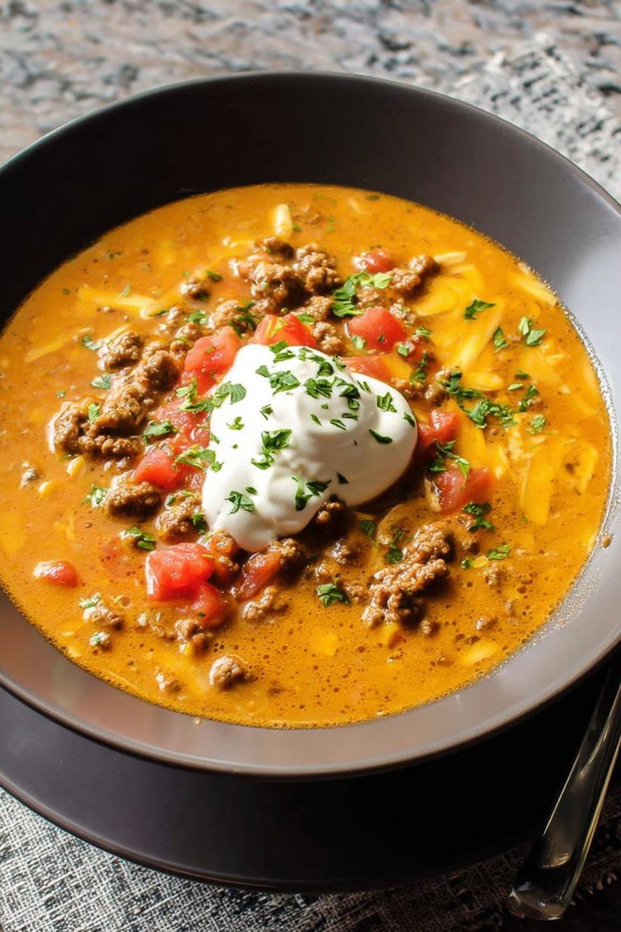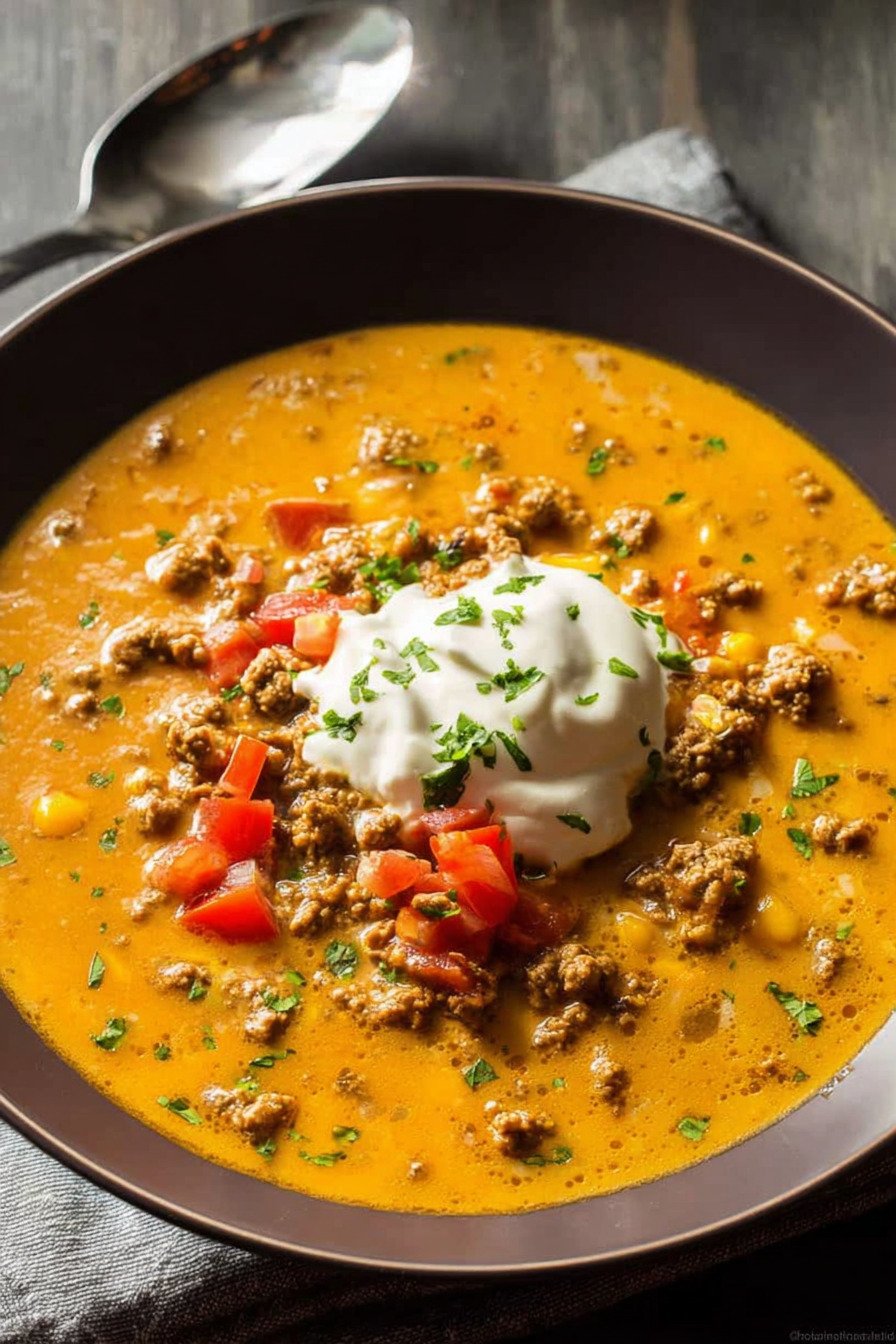 I call this taco soup my weeknight peace plan. Warm beef browns with onion, spices bloom, and the pot starts to smell like a cozy taco stand. We ladle rich broth, tomatoes, and a gentle swipe of cream cheese for a silky finish. The spoon hits tender bits and the bowl clears fast. No fuss. Big comfort. The flavor sits bold yet friendly. I like that it bends to a busy day. Toss it in the pot and let the heat do the steady work. This fits a crockpot day or a quick stovetop rush. It works as soup for a potluck or a quiet night in. Toppings turn it playful. Try lime, crunchy cabbage, or a dollop of Greek yogurt if you like it cool. We wrote this for anyone who searched taco soup and the 7 can taco soup recipe easy crowd too. If you typed recipe for taco soup you land in the right place. It belongs with crockpot recipes slow cooker fans. Pack in slow cooker vegetables for color. Fold in slow cooker tortellini for a hearty switch. Take a breath. Dinner feels easy and the table feels close.