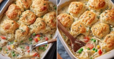 One Pot Chicken Pot Pie Casserole with Bisquick Topping