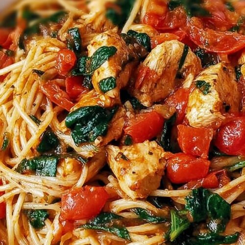 Some days I want comfort food without the sink full of dishes, and this Tomato Spinach Chicken Spaghetti hits the spot. Think tender chicken, a pile of pasta, and a sauce that’s both bright and hearty, all cooked in one pot. The beauty of one pot pasta recipes is how everything blends—the pasta soaks up the flavor of the chicken and tomatoes, the spinach wilts just enough, and I don’t have to juggle three burners at once. I’ve always been a fan of simple meals that feel bigger than the sum of their parts. This dish reminds me of weeknights when I just wanted something fast but not boring. A one pot spaghetti recipe keeps cleanup light and the table heavy with good food. The chicken adds richness, the spinach gives it freshness, and the tomato base ties it all together. What I like most is the flexibility. You can swap the pasta, play with the seasoning, or even use different greens. One Pot Chicken Recipes like this one don’t just save time, they keep everyone at the table happy. It’s comfort food that doesn’t demand much, which is exactly why I return to this recipe whenever the week feels long.