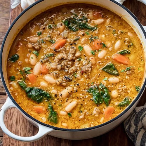 This Tuscan White Bean Soup has that kind of cozy warmth you crave when the weather turns chilly. I first made it one winter evening when my pantry was running on fumes, and those humble white beans turned into something amazing. There’s something deeply satisfying about a bowl that feels both simple and luxurious, all thanks to slow-cooked onions, garlic, and a splash of olive oil. We simmer the beans until they’re tender enough to melt a little on your tongue, with bits of kale and carrots adding color and comfort. You know that moment when your spoon hits a soft bean and a bit of rosemary floats by? Yeah, that’s happiness in a bowl. And because it’s packed with fiber, protein, and healthy fats, it checks all the boxes for anyone looking for Heart Healthy Soup Recipes that actually taste good. If you love a Healthy Hearty Soup or crave something like a healthy pumpkin soup recipe, this one’s got that rustic Italian vibe. It reminds me of those Olive Garden Soup Recipes everyone raves about—but homemade and better. Whether you’re into roasted pumpkin soup recipe ideas or searching for a good bean soup recipe or even an italian lentil soup recipe, this hits the mark every single time.