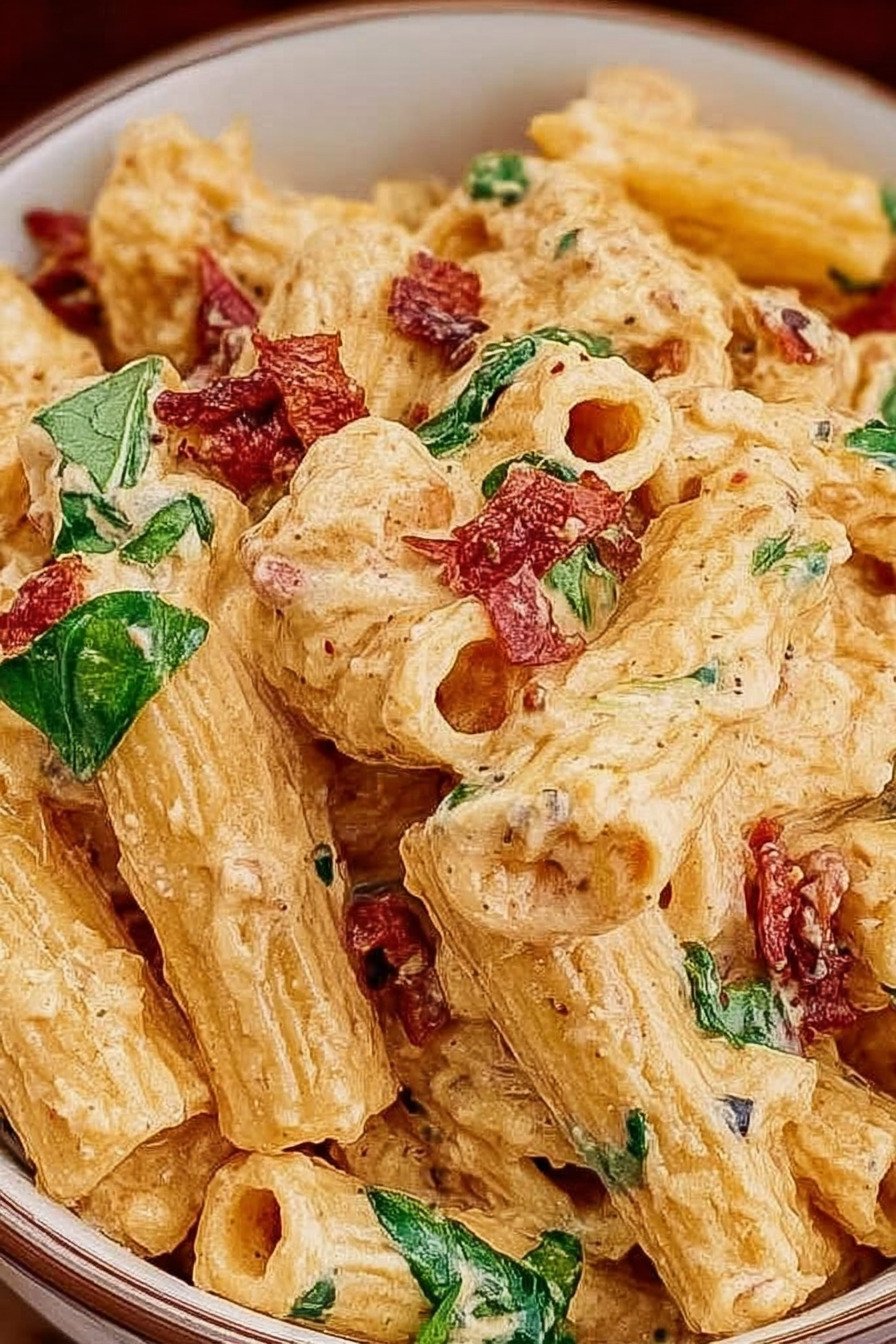 The method reads straight. Boil pasta. Build sauce. Toss together. I keep the heat medium to protect the creamy base. A handful of spinach softens in the pan. Basil lifts the finish. We taste and adjust salt and pepper. I keep that balance steady. The bowl lands on the table and draws everyone close.
