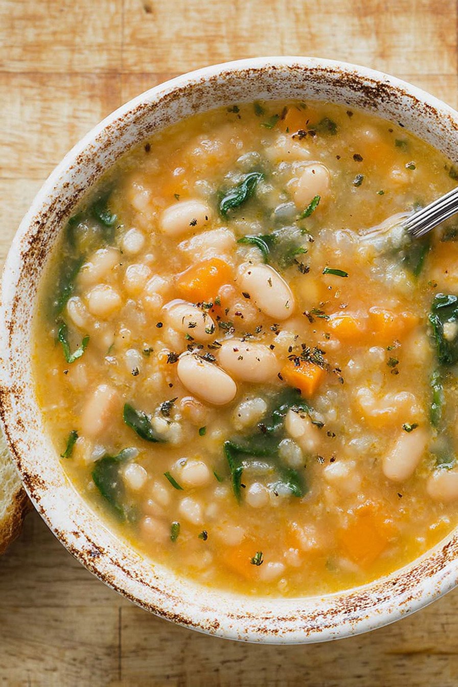 A warm bowl on the second day often tastes richer than the first. That slow rest lets the herbs and garlic blend through the beans.