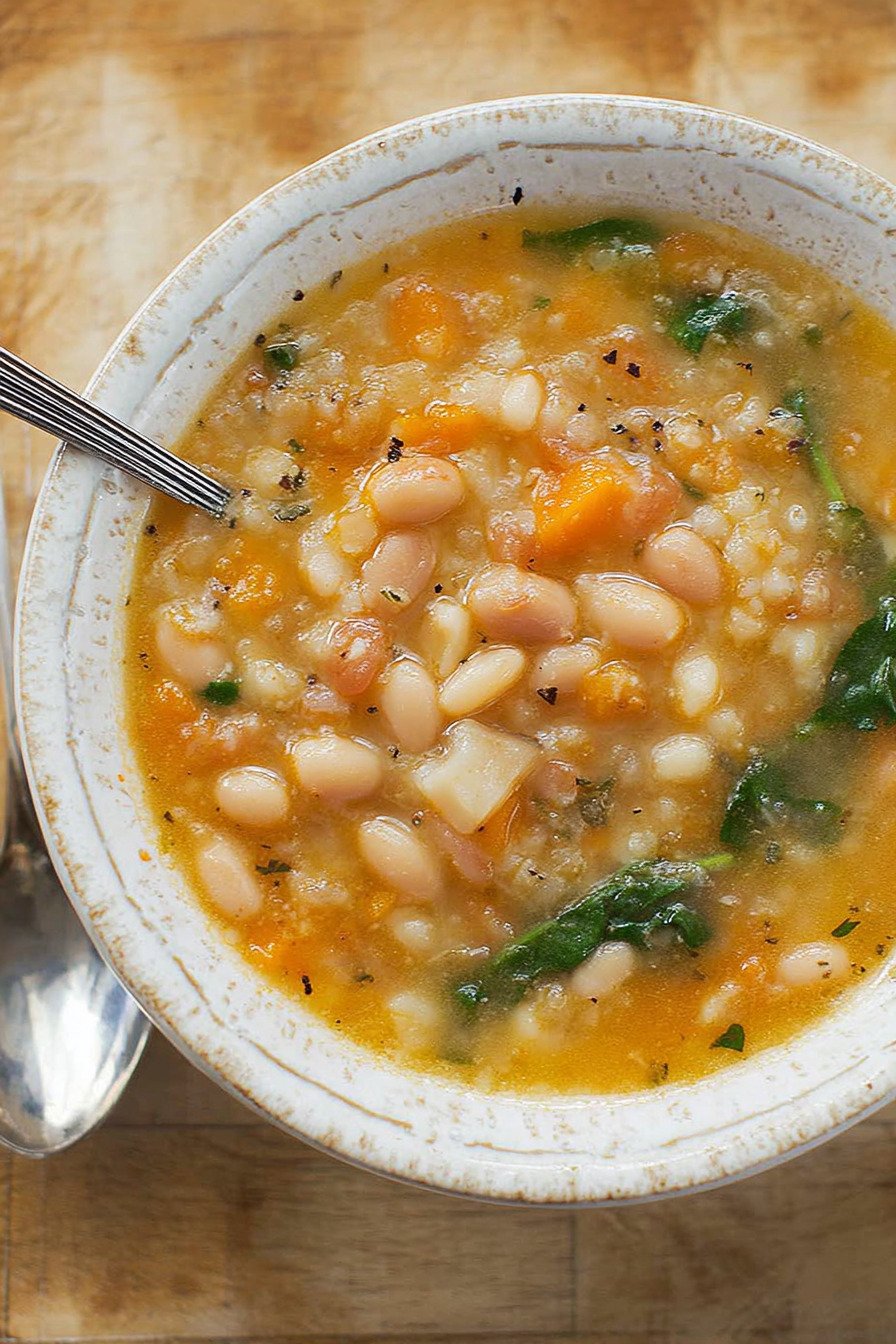 White Beans Soft beans form the base of the soup. I use canned beans most days since they save time and still taste great. When they simmer in broth they grow tender and creamy.