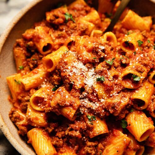 Finish with grated parmesan and red pepper flakes then serve hot.