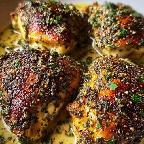 Stir in Dijon mustard and chicken stock, scraping up any browned bits.