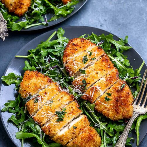 Dip each chicken cutlet into the egg, then press firmly into the bread crumb mixture to coat both sides.