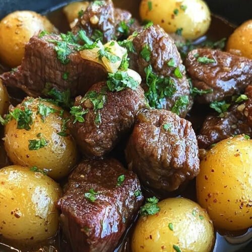 Season beef cubes with salt and pepper, then sear in batches until browned. Remove and set aside.