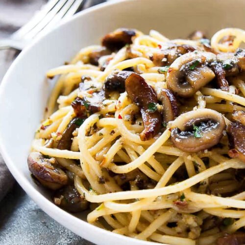 Sprinkle in the chili flakes, salt, and black pepper. Stir well to coat the mushrooms.