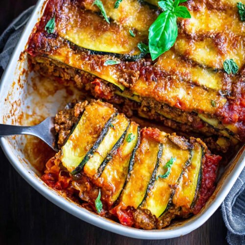 Layer zucchini slices, mushroom mixture, ricotta (mixed with egg if using), more sauce, and mozzarella.